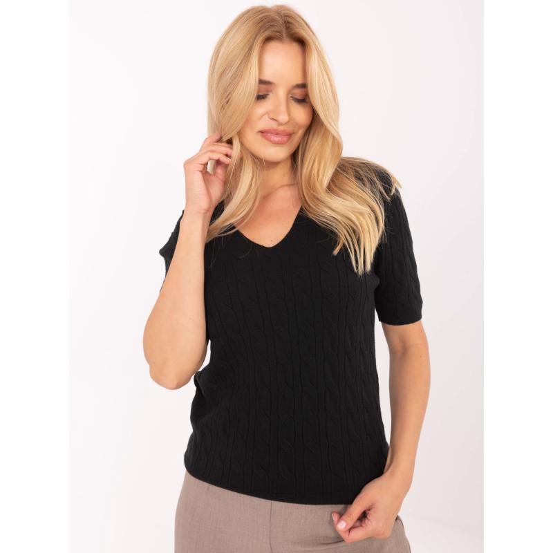 Klasszikus pulóver fekete színben, geometrikus mintával