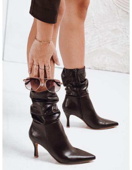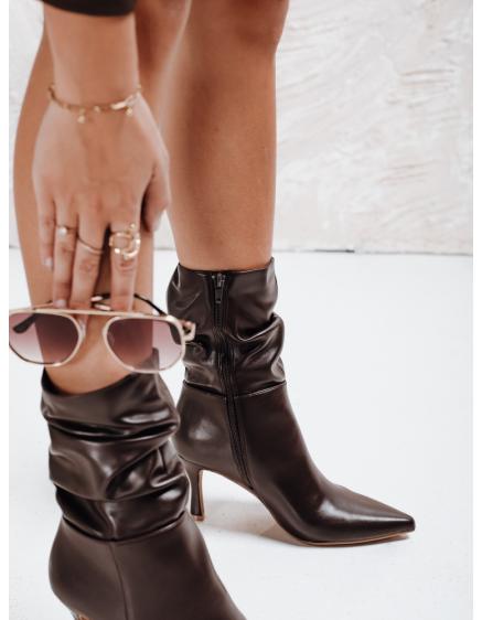 Barna bokacsizma magas sarkú, gyűrt felsőrésszel