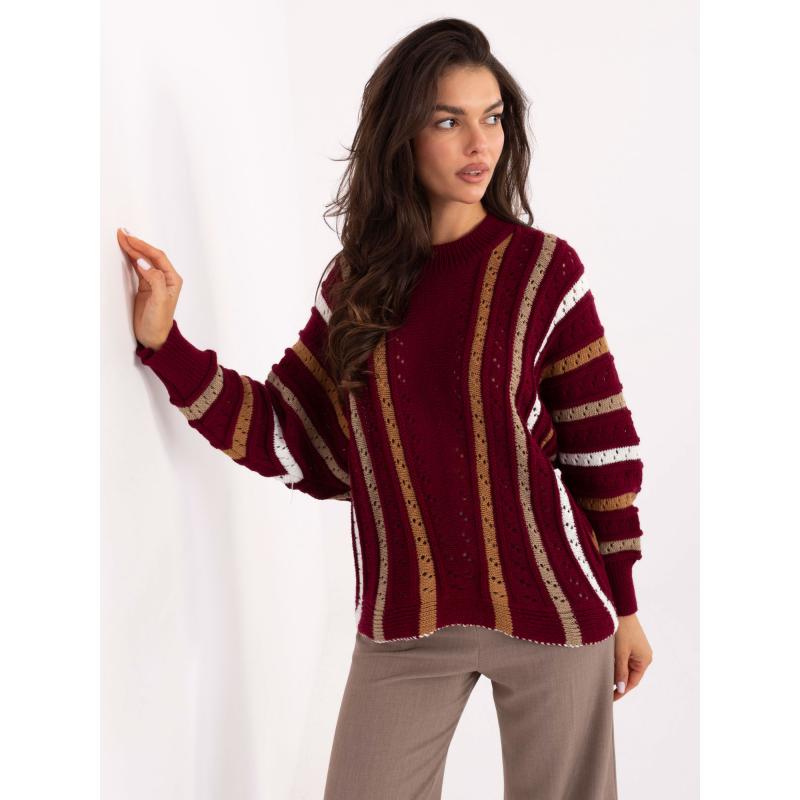 Klasszikus pulóver bordó színben, geometrikus mintával