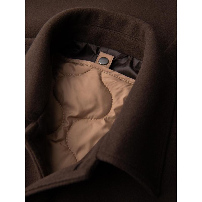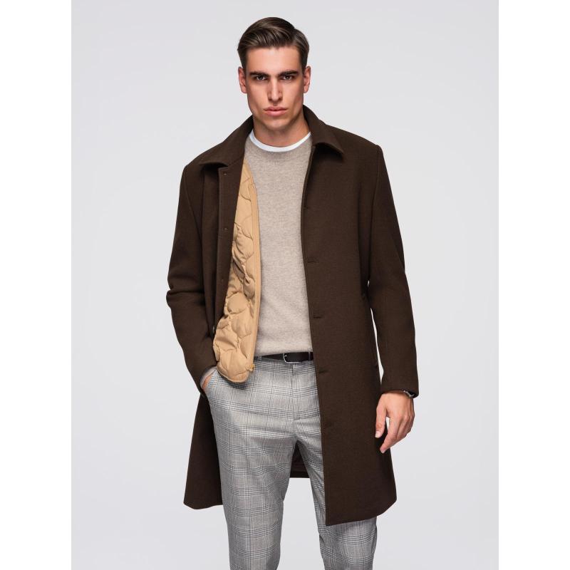 Egyrétegű, galléros, bélelt, hosszú férfi kabát – barna V4 OM-COWC-0135