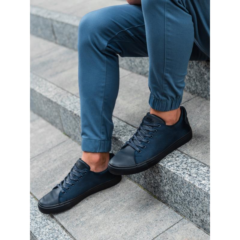 Egyszínű férfi szabadidőcipő kombinált anyagokból – sötétkék V2 OM-FOCS-0105