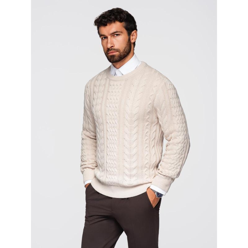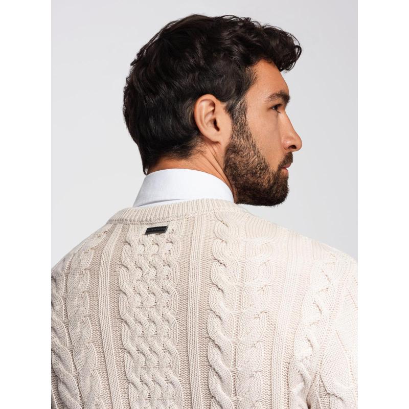 Elegáns férfi pulóver érdekes kötéssel – ecru V1 OM-SWSW-0173
