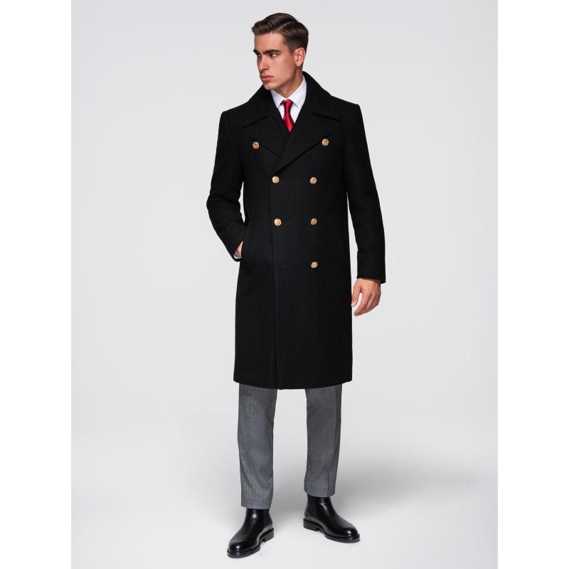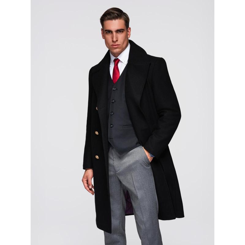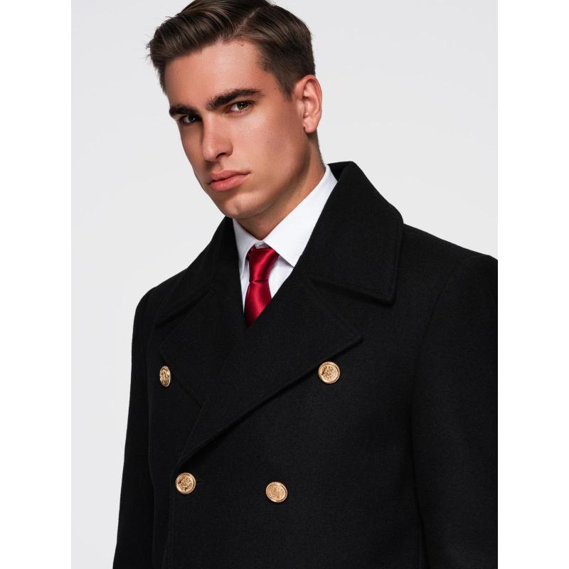 Elegáns katonai kabát férfiaknak gyapjúval – fekete V1 OM-COWC-0145