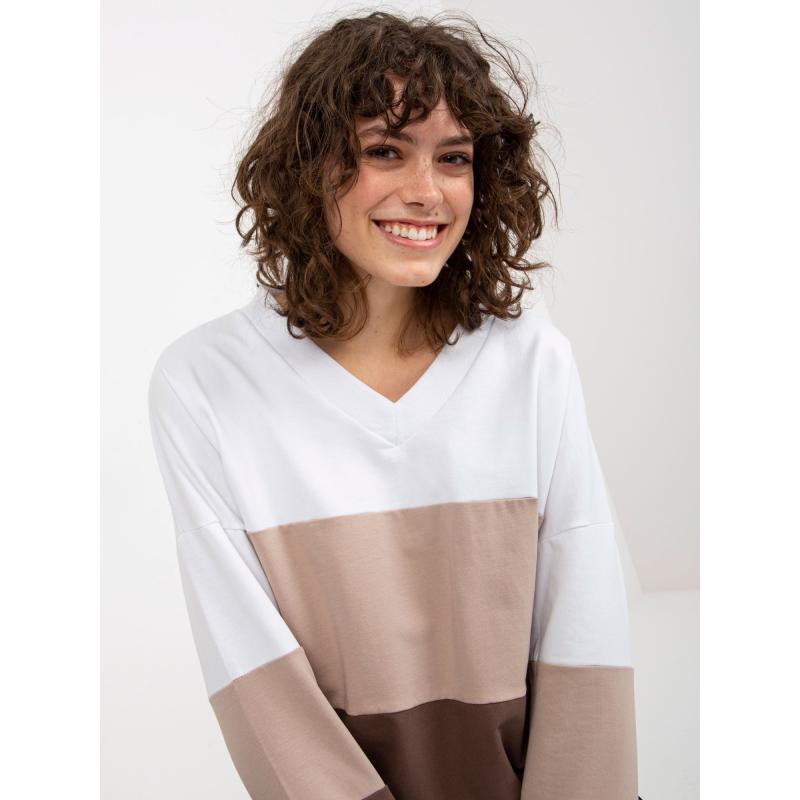 Chcete doručiť tovar na Slovensko? Prezrite si Biela a hnedá basic mikina s výstrihom do V RUE PARIS. Chcete doručit produkt do České republiky? Podívejte se na Bílo-hnědá mikina basic s výstřihem do V RUE PARIS.