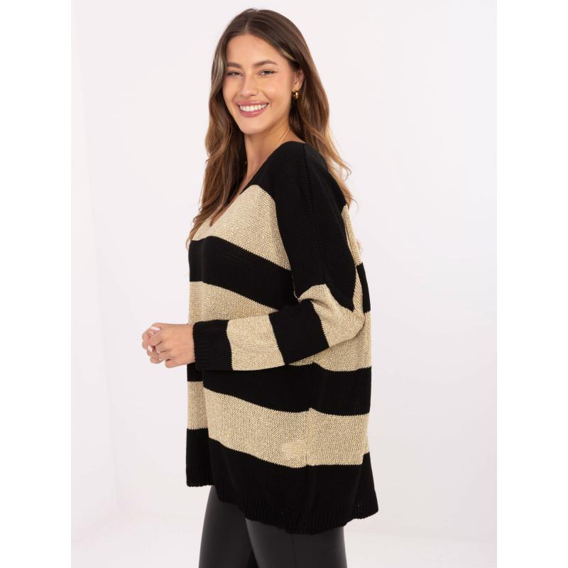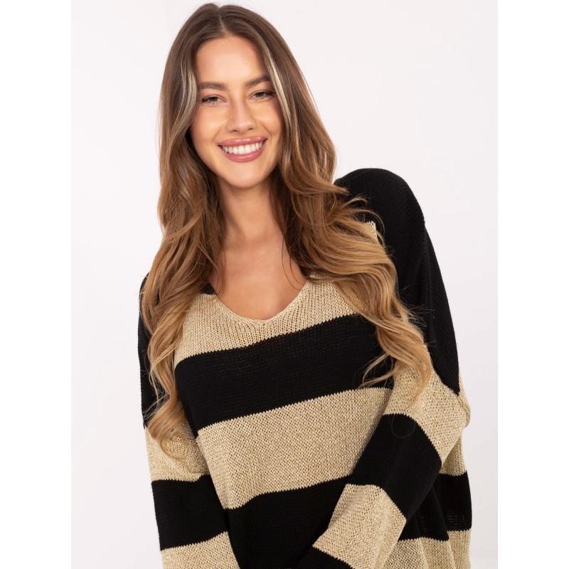 Chcete doručiť tovar na Slovensko? Prezrite si Čierno-zlatý dámsky oversized sveter s pruhmi. Chcete doručit produkt do České republiky? Podívejte se na Černo-zlatý dámský oversize svetr s pruhy.