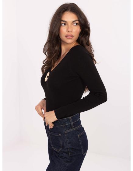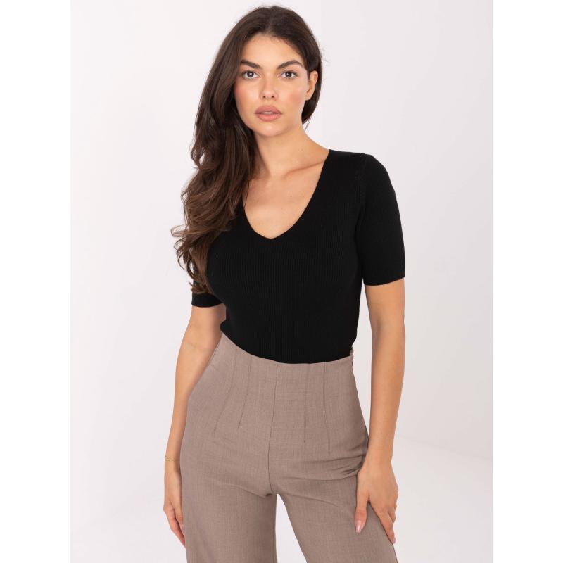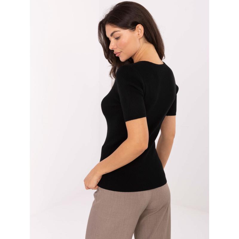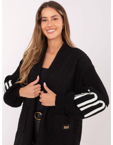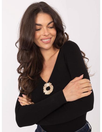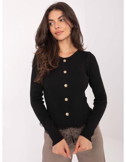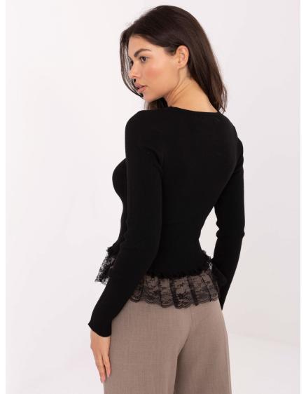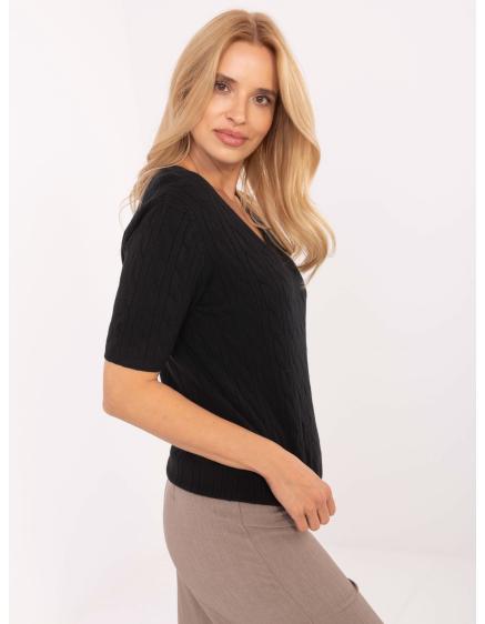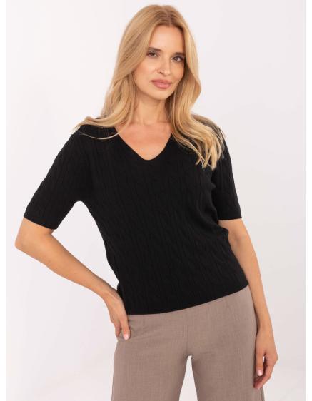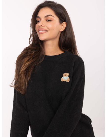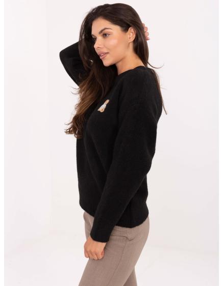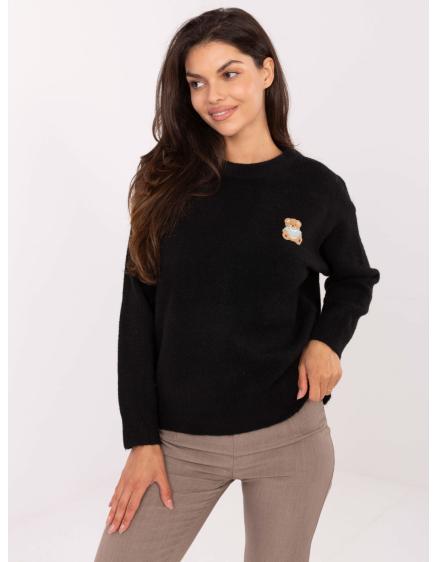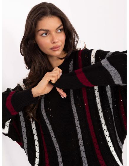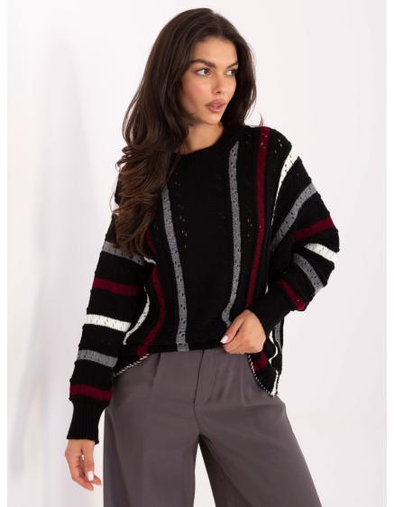 Klasszikus pulóver fekete színben, geometrikus mintával