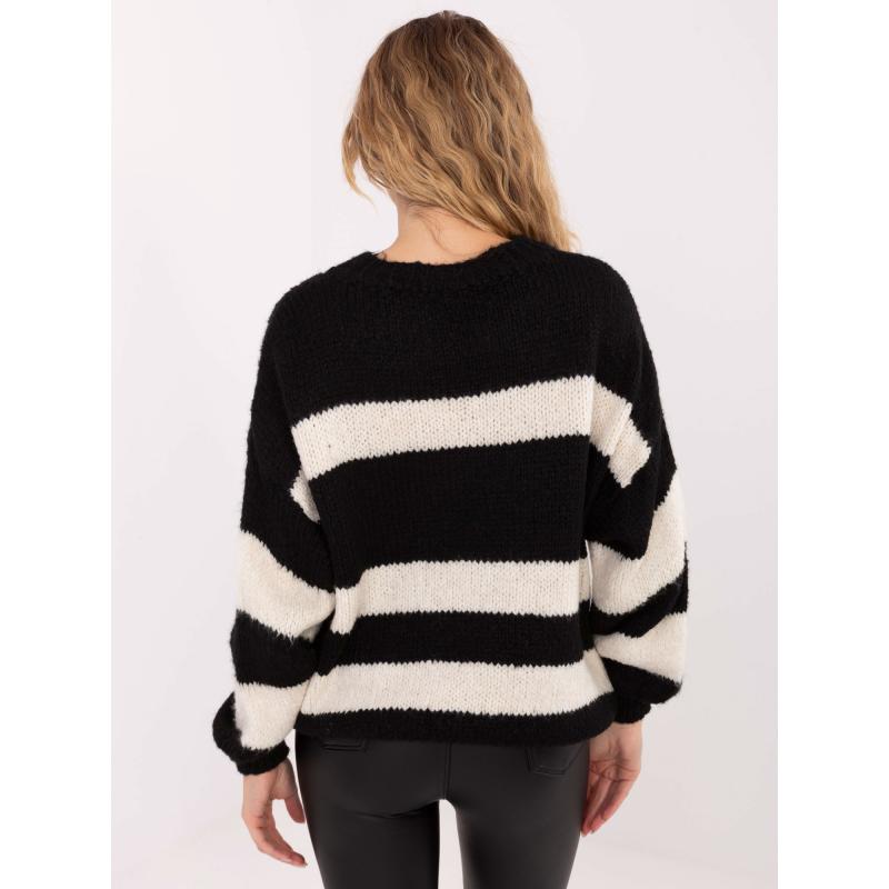 Fekete és ecru női oversized pulóver felirattal