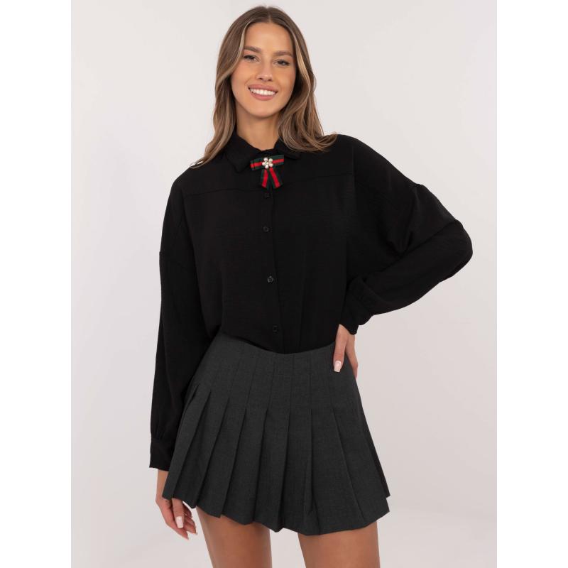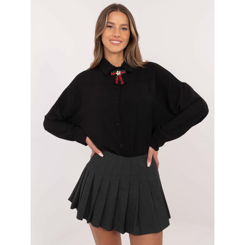 Chcete doručiť tovar na Slovensko? Prezrite si Čierna dámska oversize košeľa s brošňou. Chcete doručit produkt do České republiky? Podívejte se na Černá dámská košile oversize s broží.
