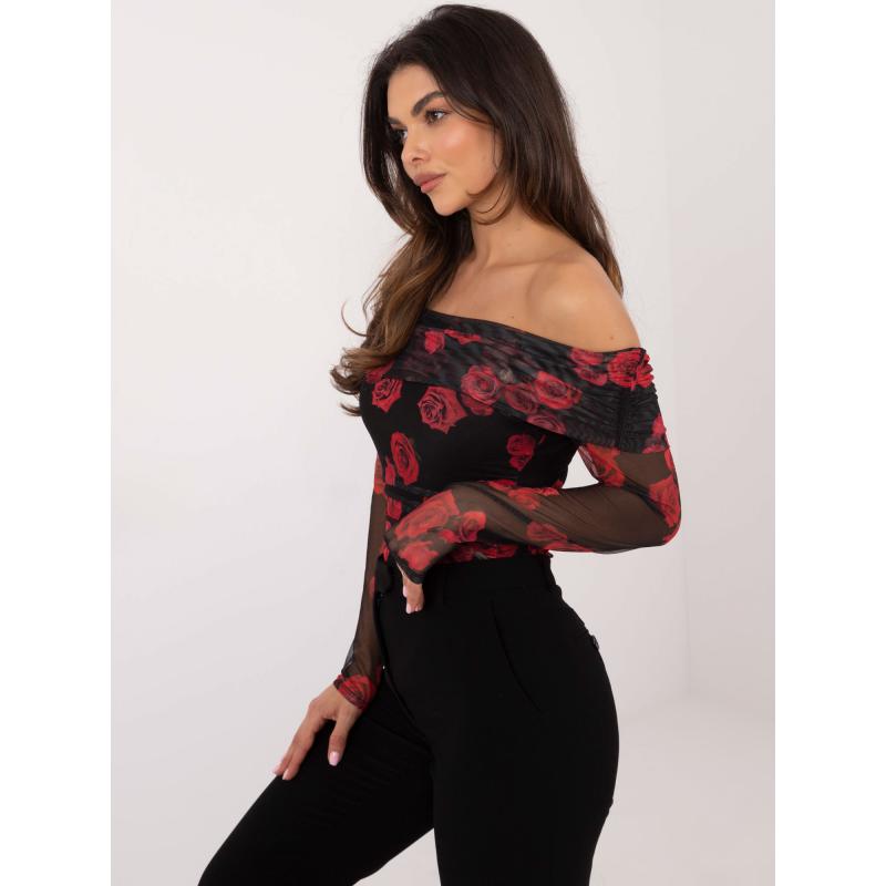 Fekete-piros hálós pöttyös blúz