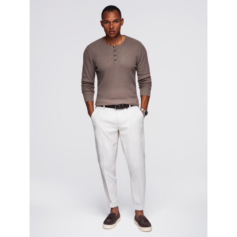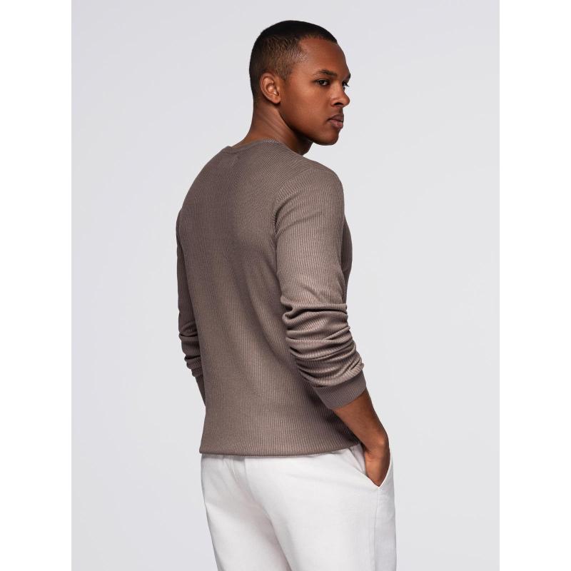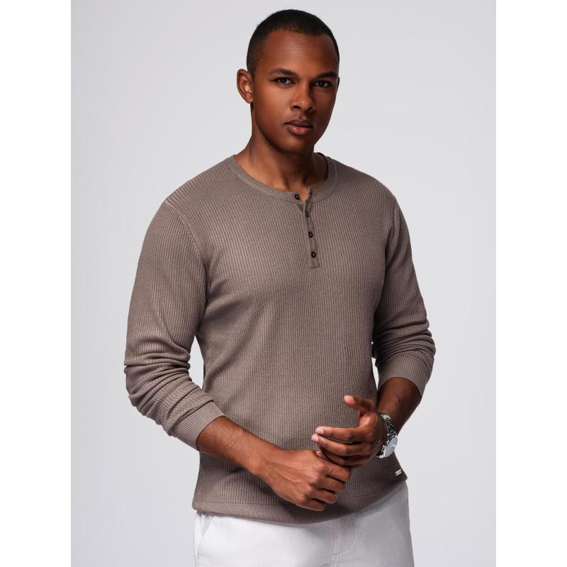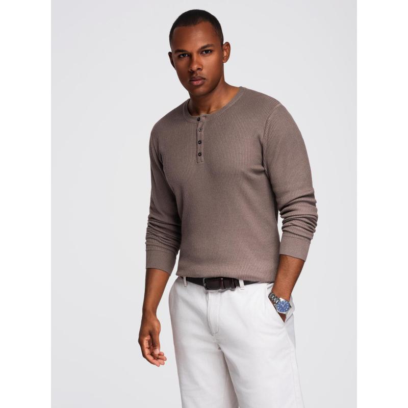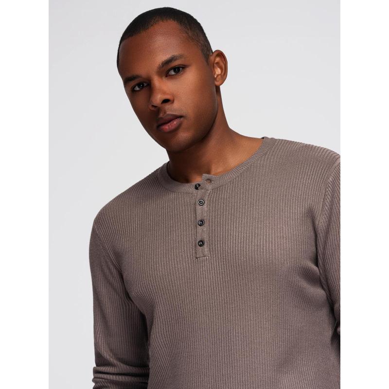 Férfi csíkos pulóver gombokkal a nyaknál – szürke V4 OM-SWSW-0182