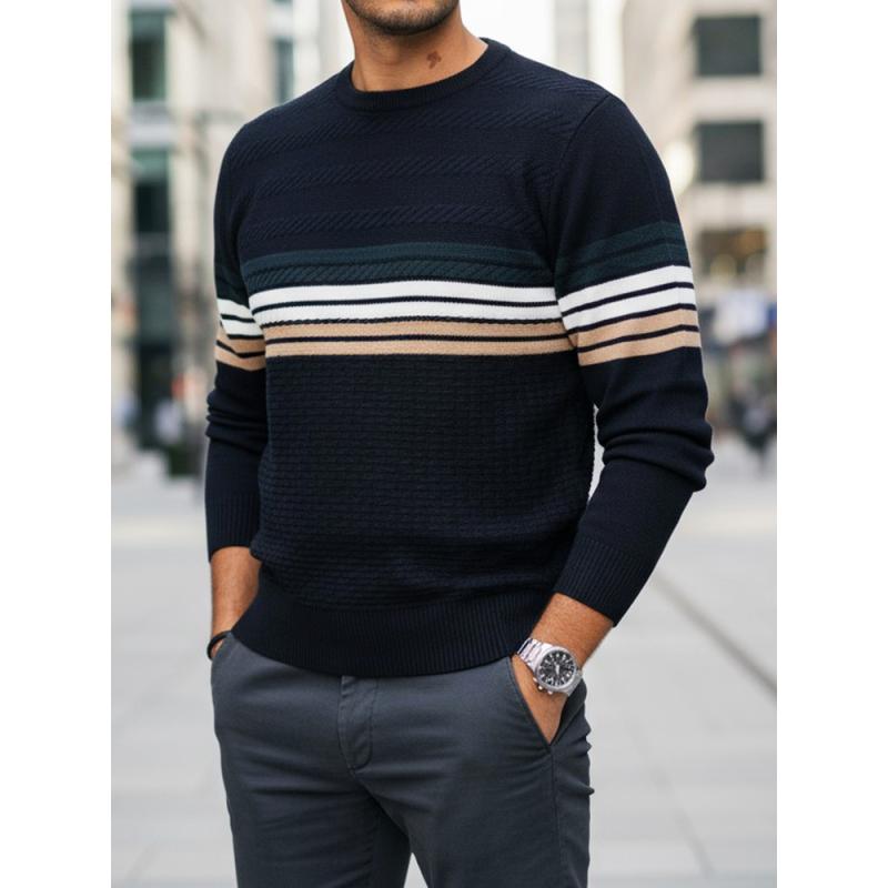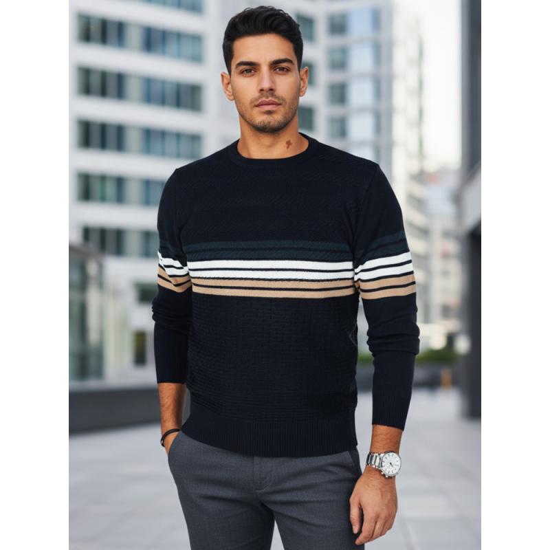 Chcete doručiť tovar na Slovensko? Prezrite si Pánsky pruhovaný sveter, tmavomodrý. Chcete doručit produkt do České republiky? Podívejte se na Pánský svetr s pruhy, tmavě modrý.