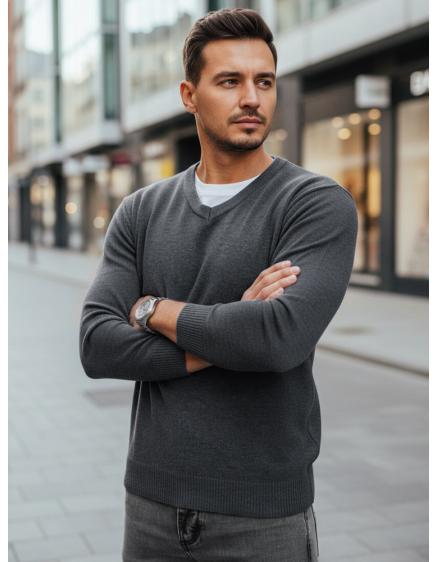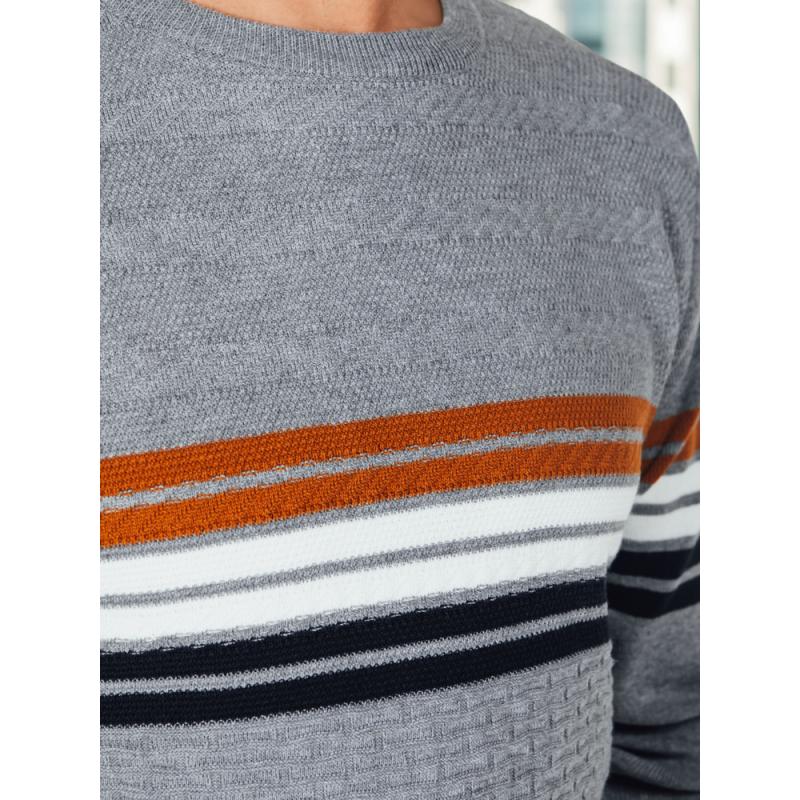 Férfi csíkos pulóver, szürke