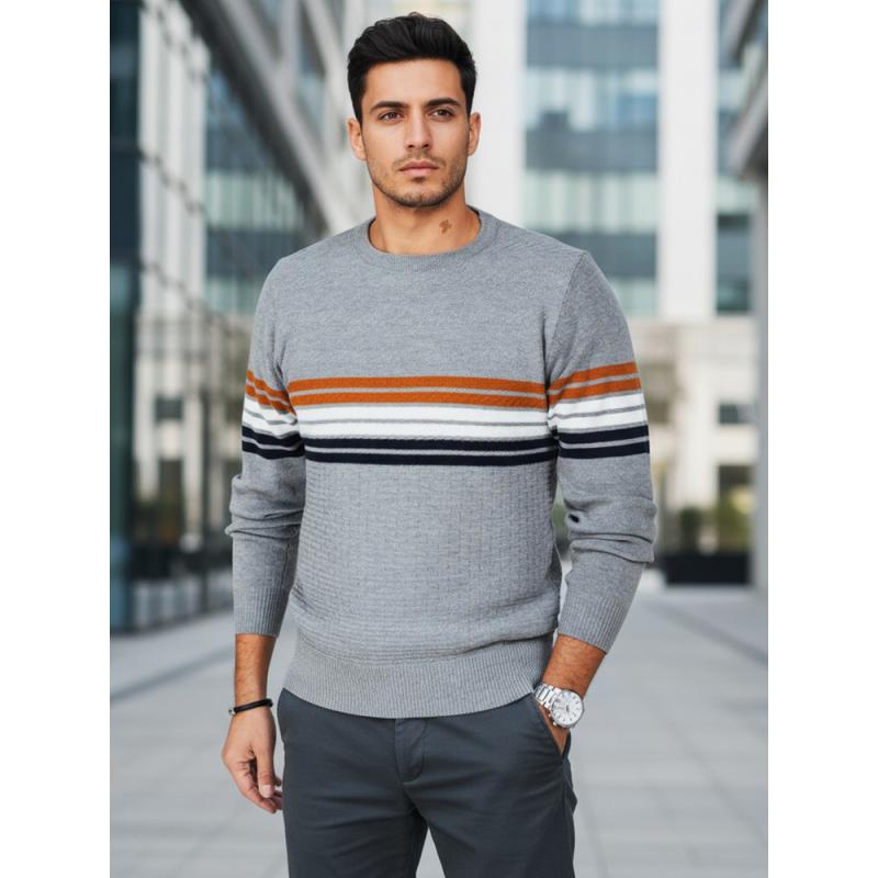 Chcete doručiť tovar na Slovensko? Prezrite si Pánsky pruhovaný sveter, sivý. Chcete doručit produkt do České republiky? Podívejte se na Pánský svetr s pruhy, šedý.