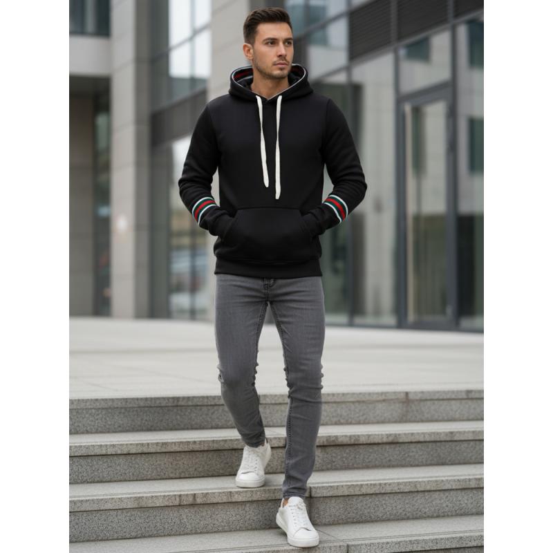 Férfi fekete kapucnis pulóver
