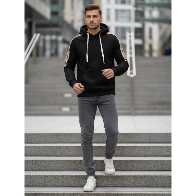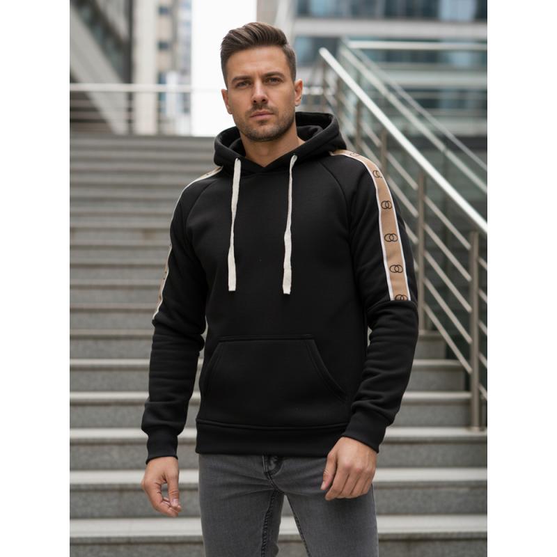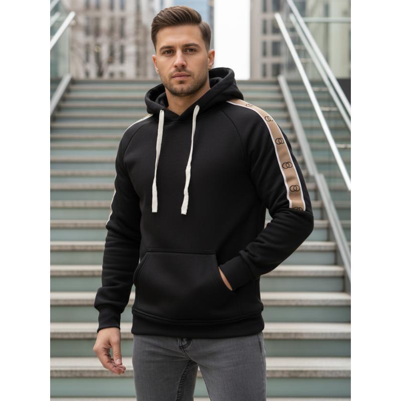 Férfi fekete kapucnis pulóver