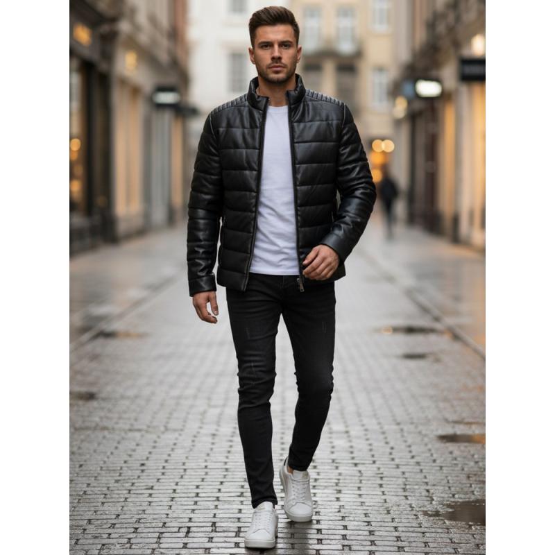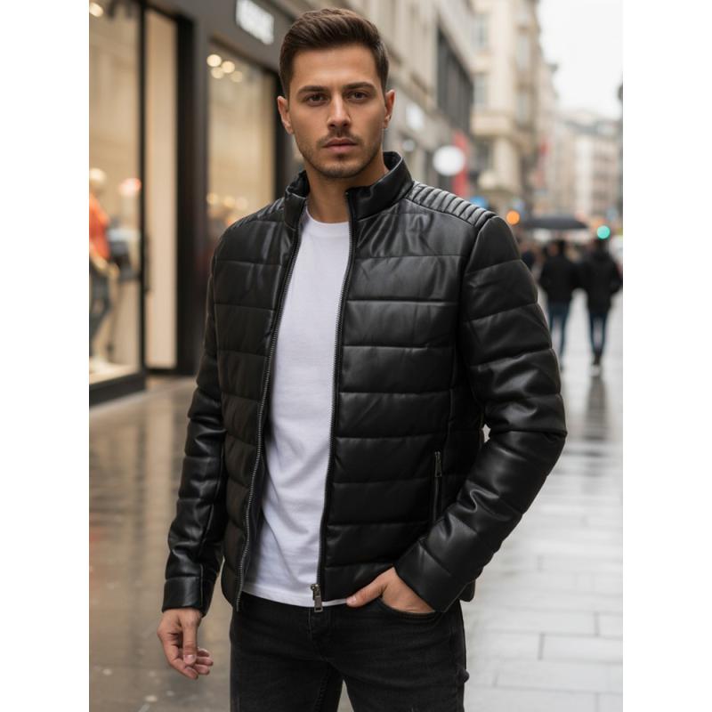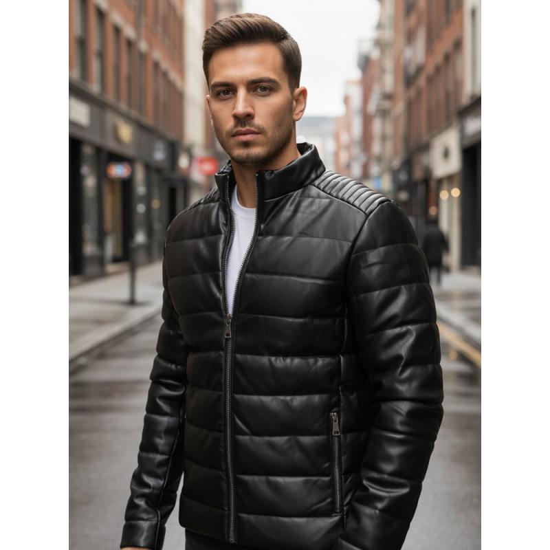 Chcete doručiť tovar na Slovensko? Prezrite si Pánska čierna prešívaná zimná bunda z umelej kože. Chcete doručit produkt do České republiky? Podívejte se na Pánská zimní prošívaná koženková bunda černá.