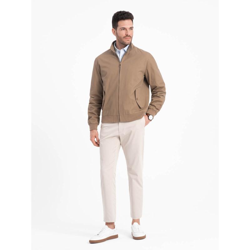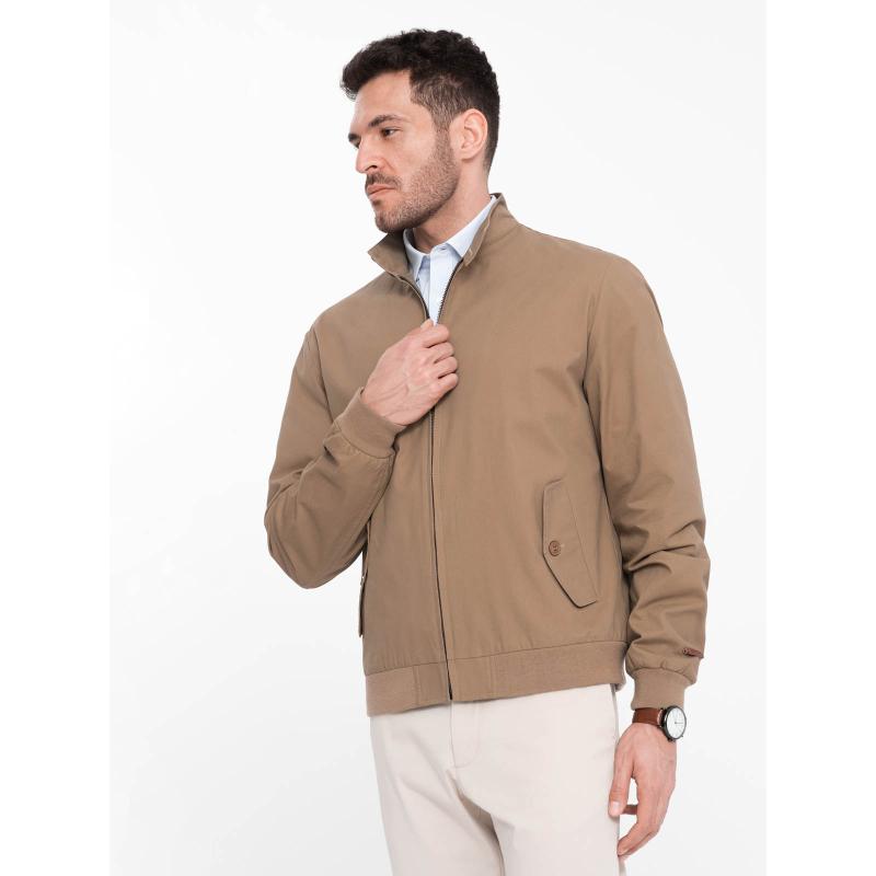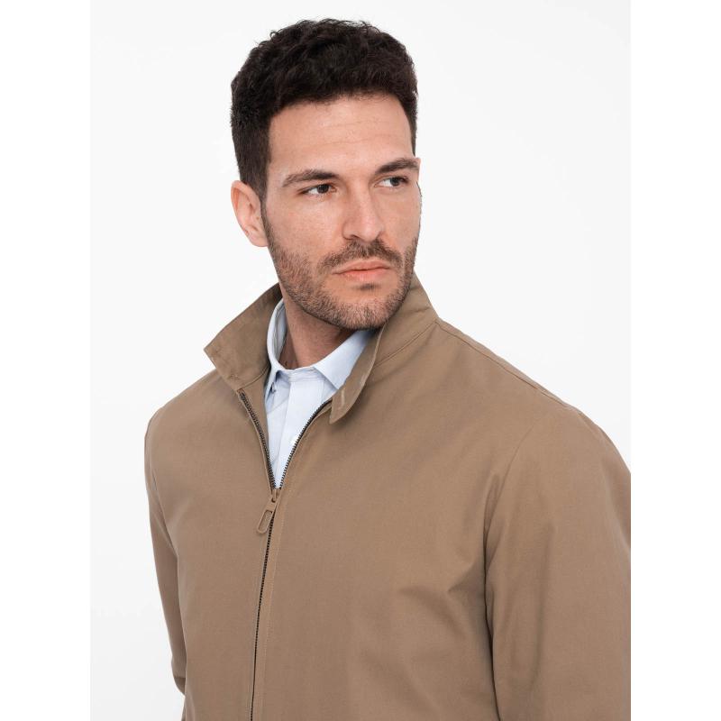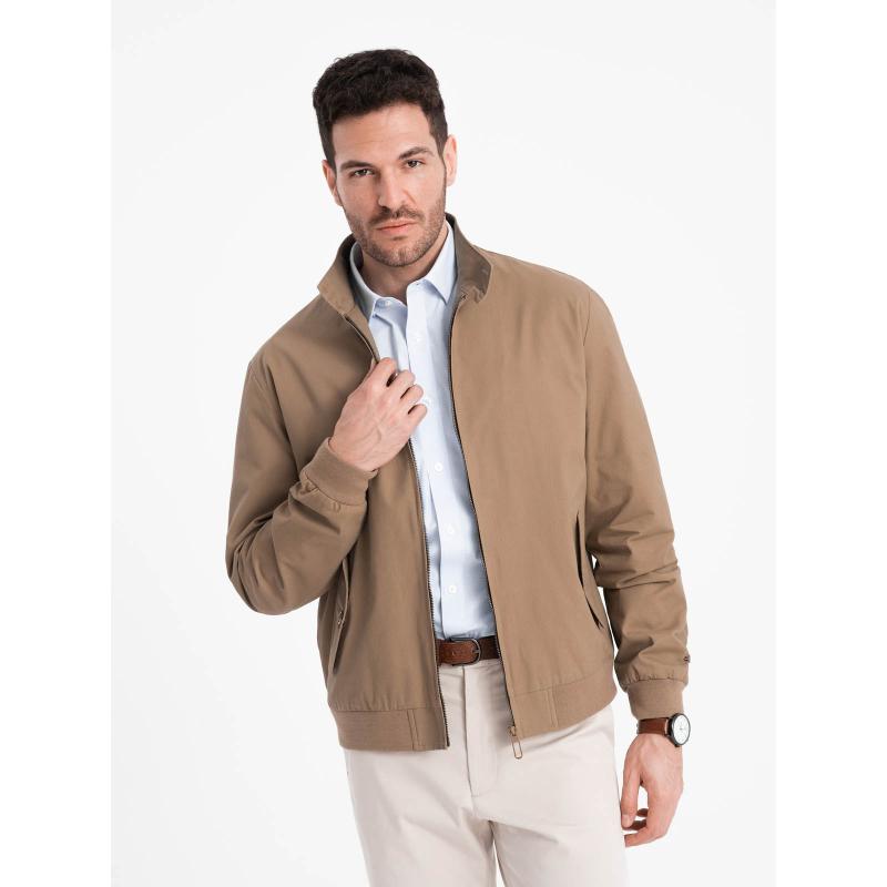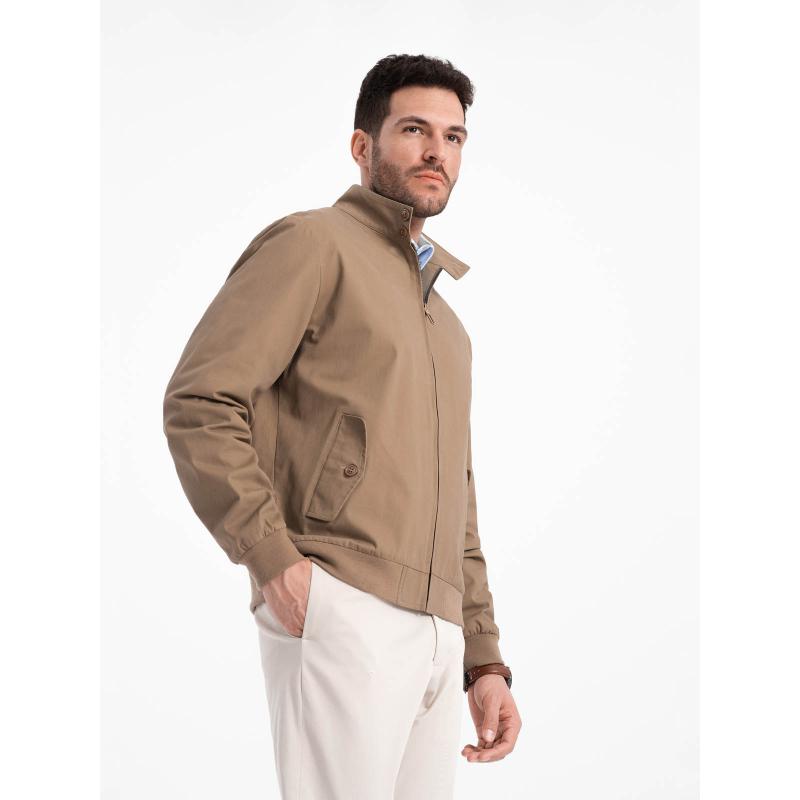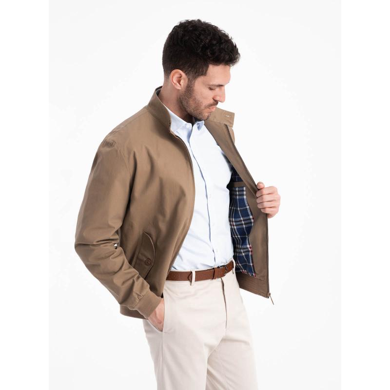 Férfi Harrington dzseki állógallérral és kockás béléssel barna