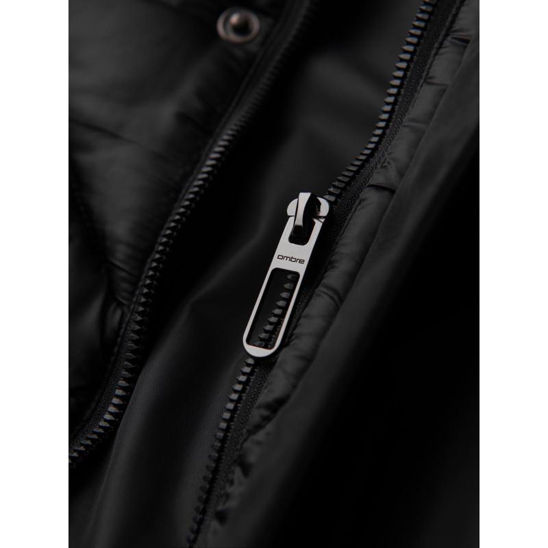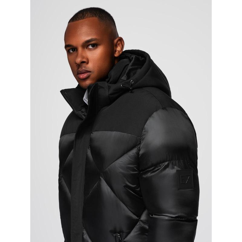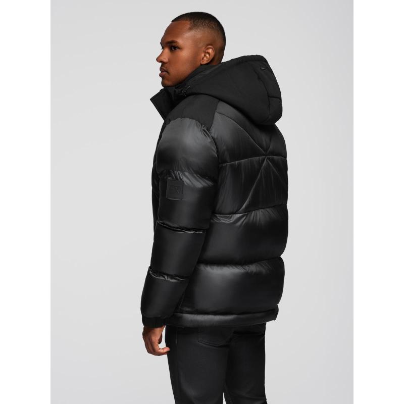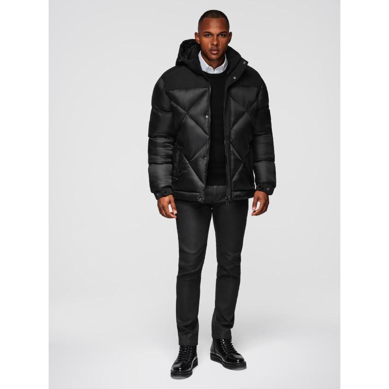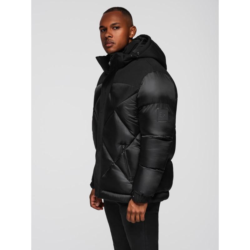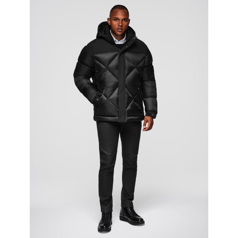 Férfi kabát kapucnival és geometrikus steppéssel – fekete V1 OM-JAHP-0237