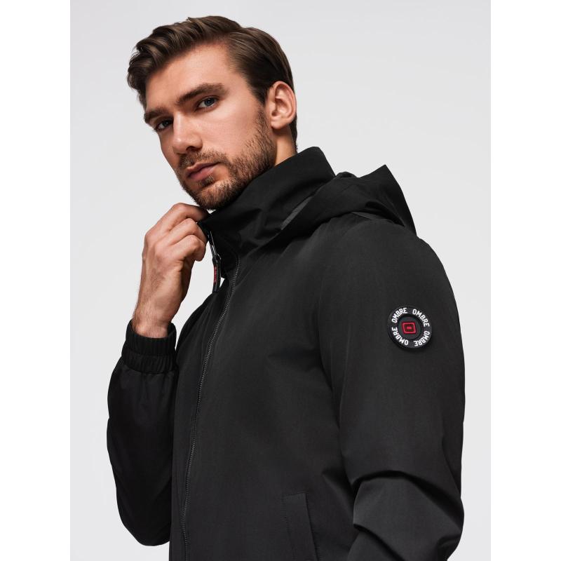 Férfi kabát kapucnival és magas gallérral – fekete V1 OM-JANP-0222