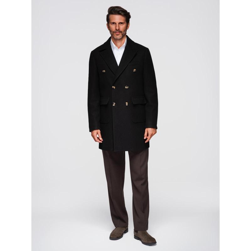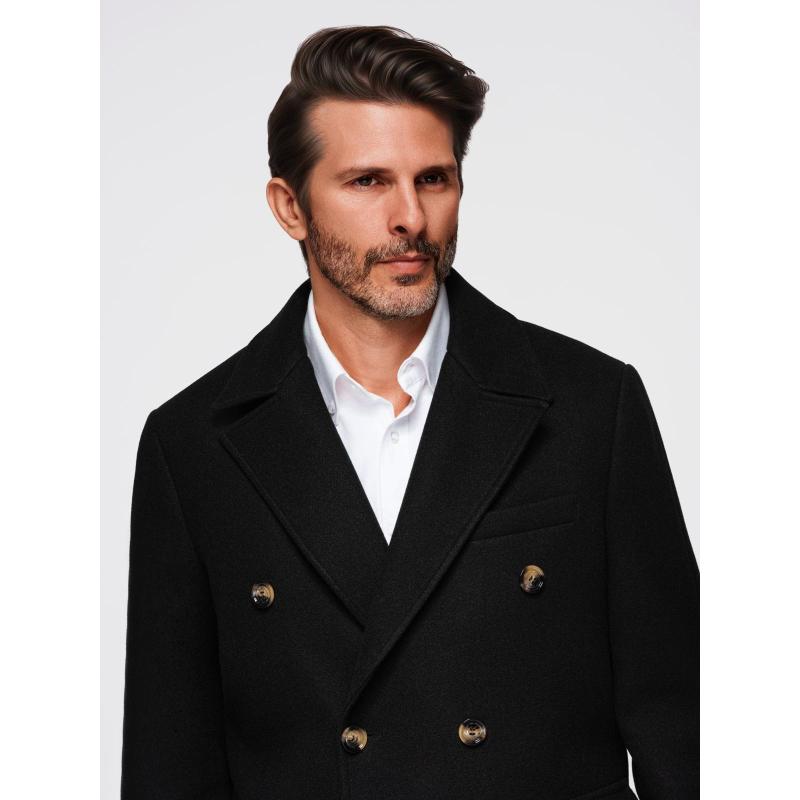Férfi kabát két soros gombolással és díszgombokkal – fekete V2 OM-COWC-0137