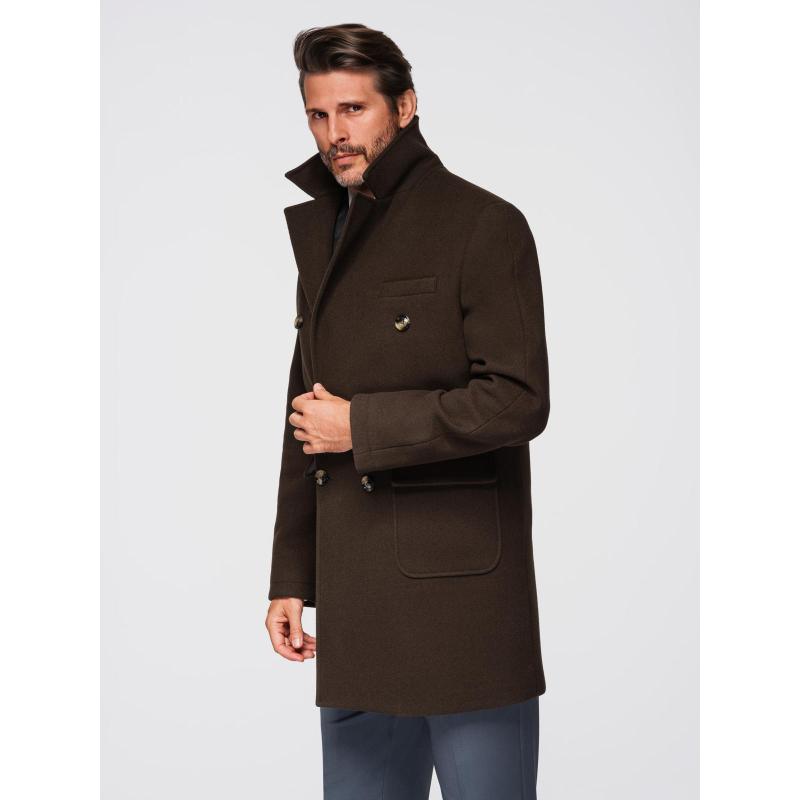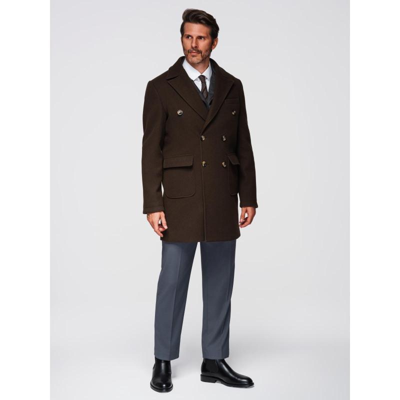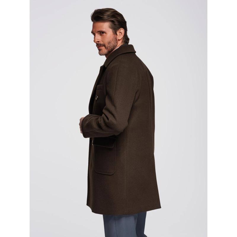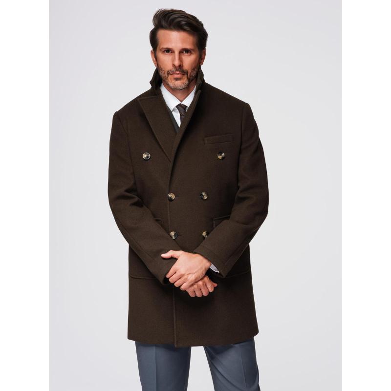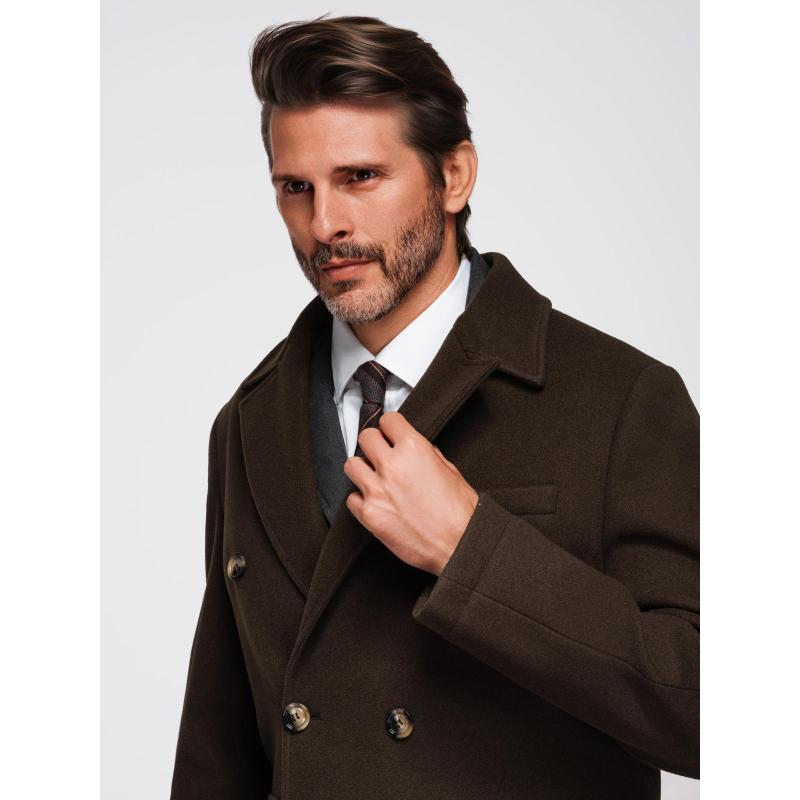 Férfi kabát két soros gombolással és díszgombokkal – sötétbarna V3 OM-COWC-0137