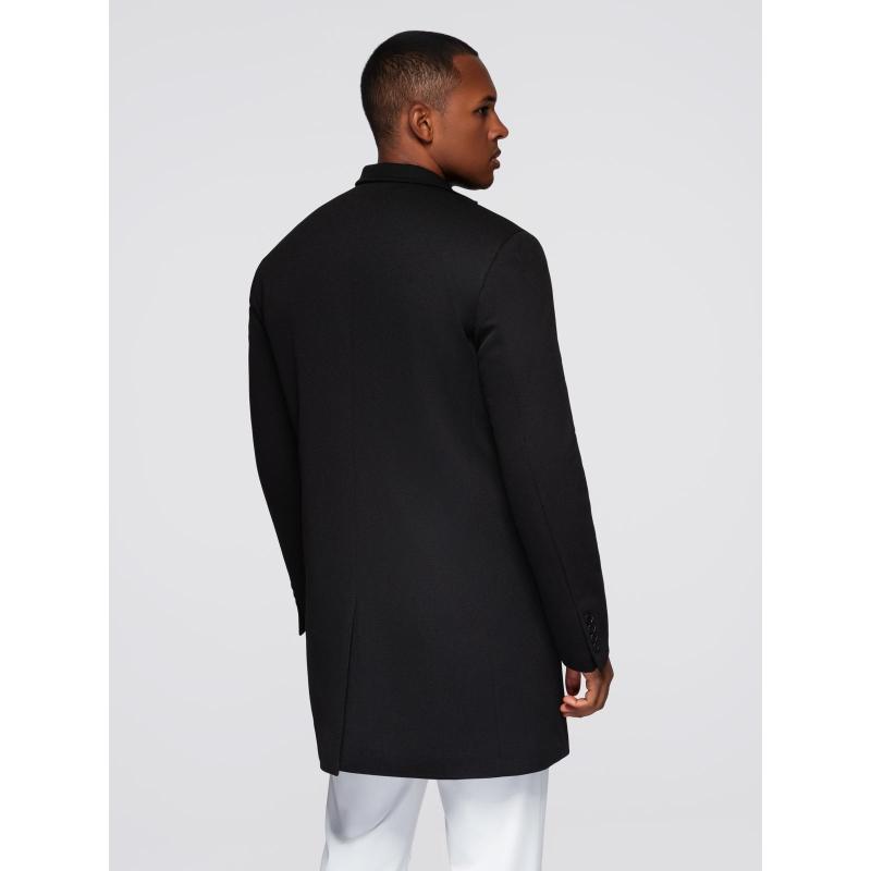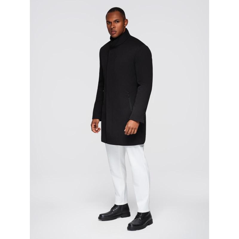 Férfi kabát magas gallérral és strukturált szabással – fekete V1 OM-COWC-0136
