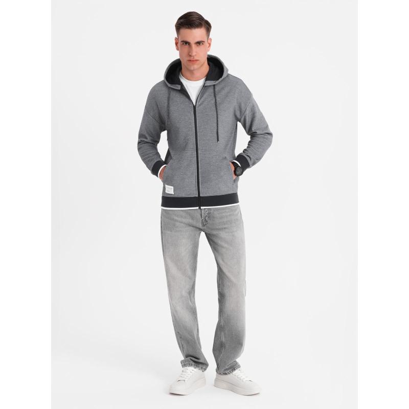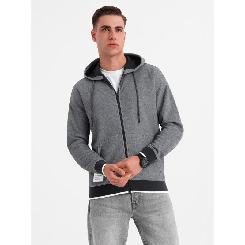 Férfi kapucnis pulóver finom textúrával – fekete V1 OM-SSZP-0191