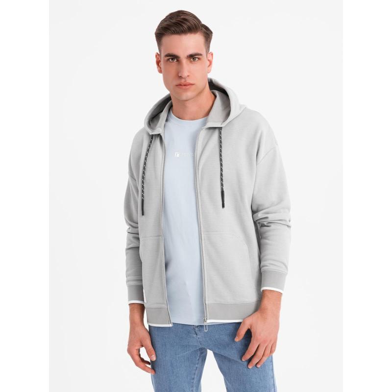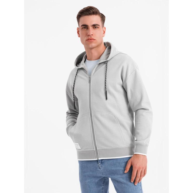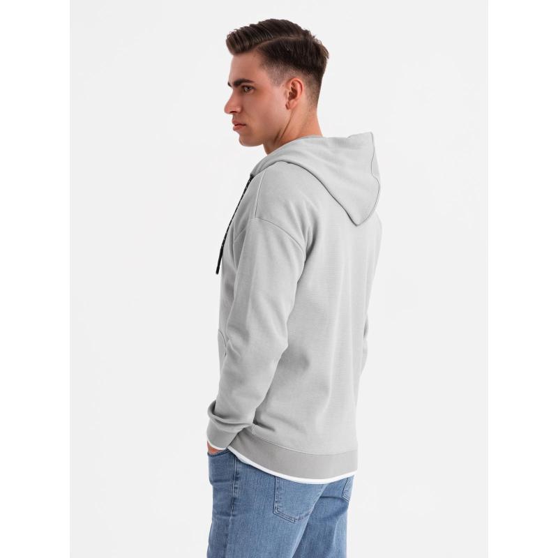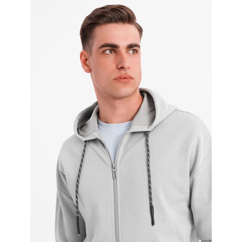 Férfi kapucnis pulóver finom textúrával – szürke V4 OM-SSZP-0191