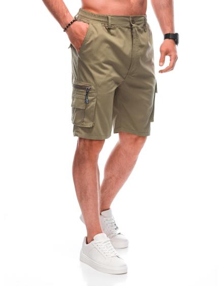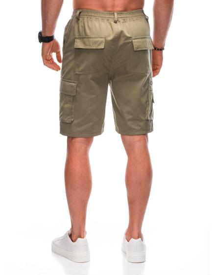 Férfi egyszínű rövidnadrág Cargo zsebekkel Sötét olajbogyó