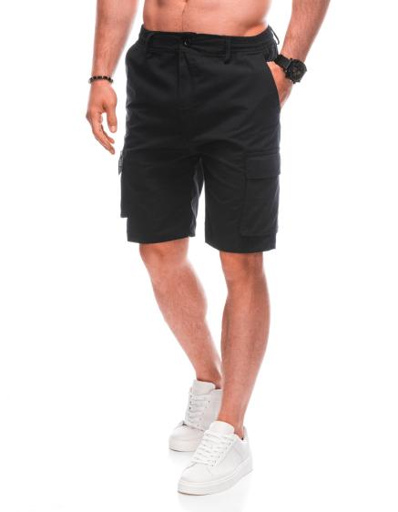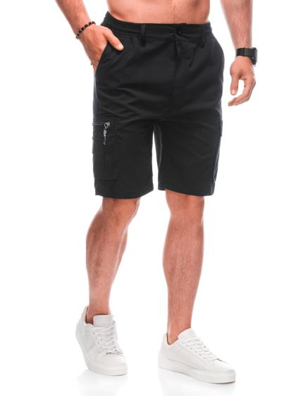 Egyszínű férfi rövidnadrág cargo zsebekkel fekete