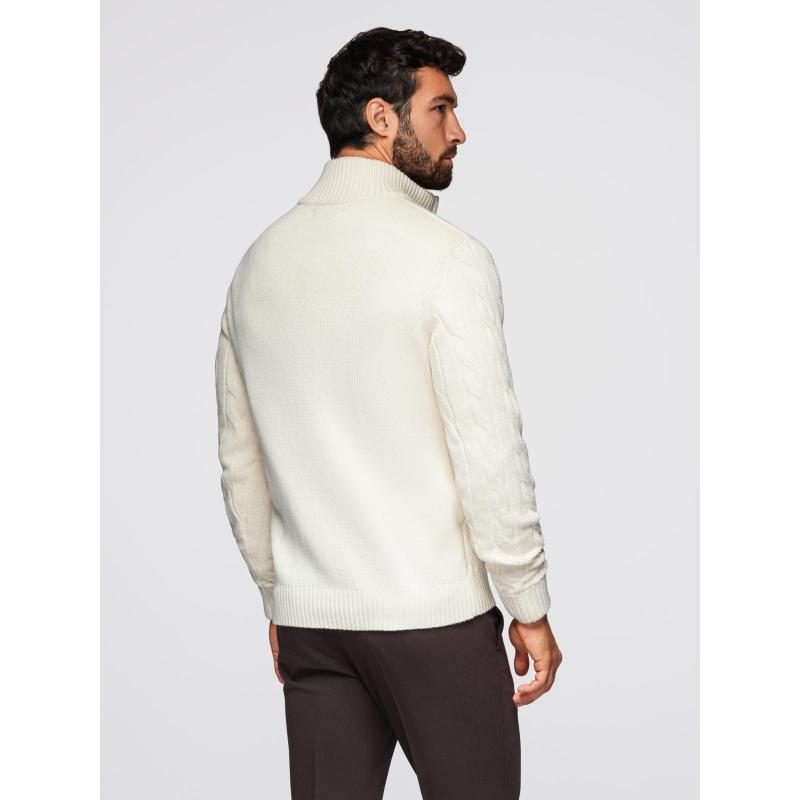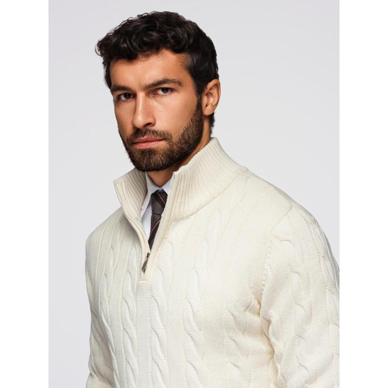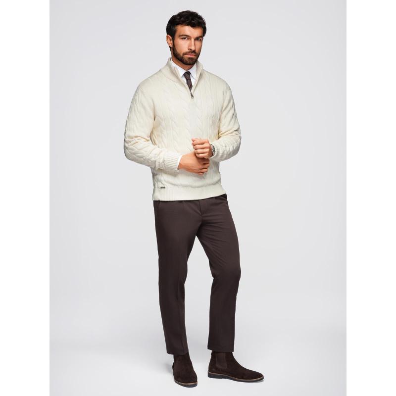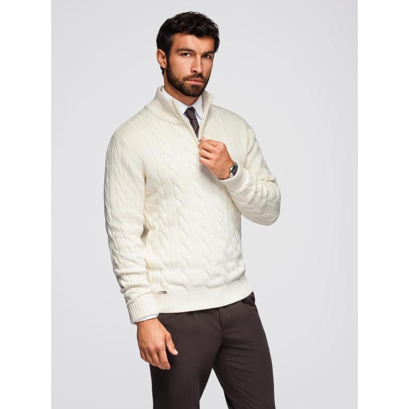 Férfi kockás pulóver rolós nyakkal és cipzárral – krém V1 OM-SWZS-0138