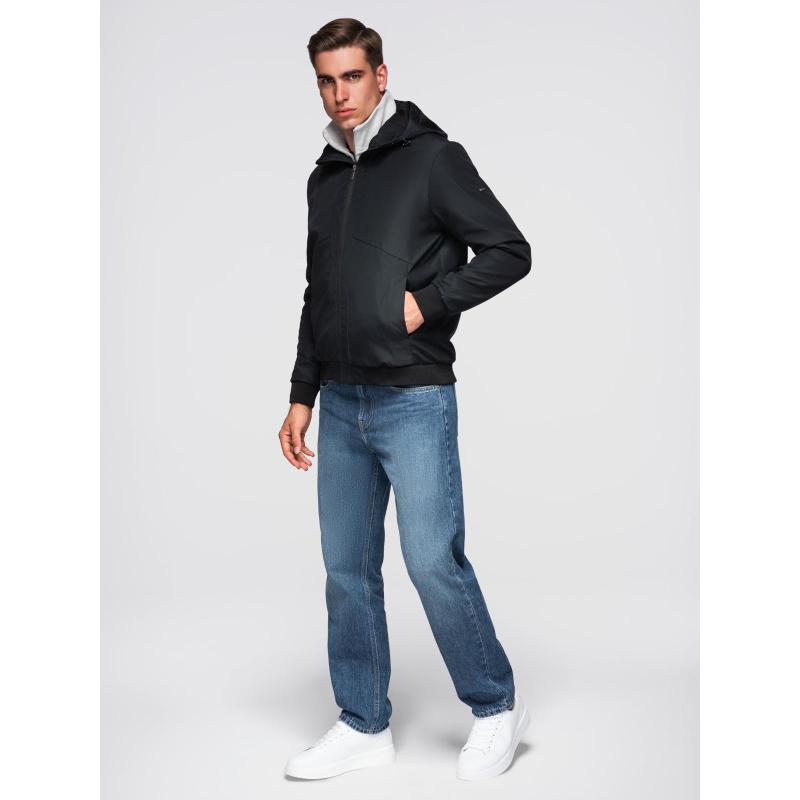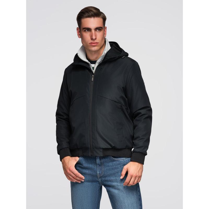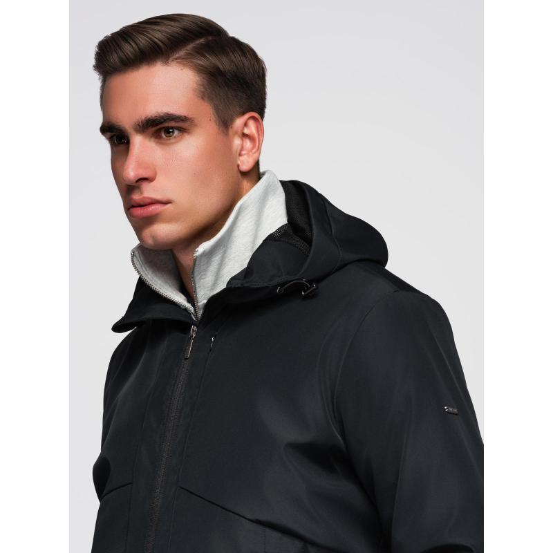 Férfi könnyű kabát hálós béléssel és kapucnival – fekete V4 C640