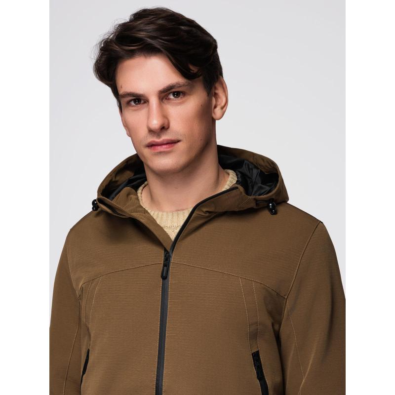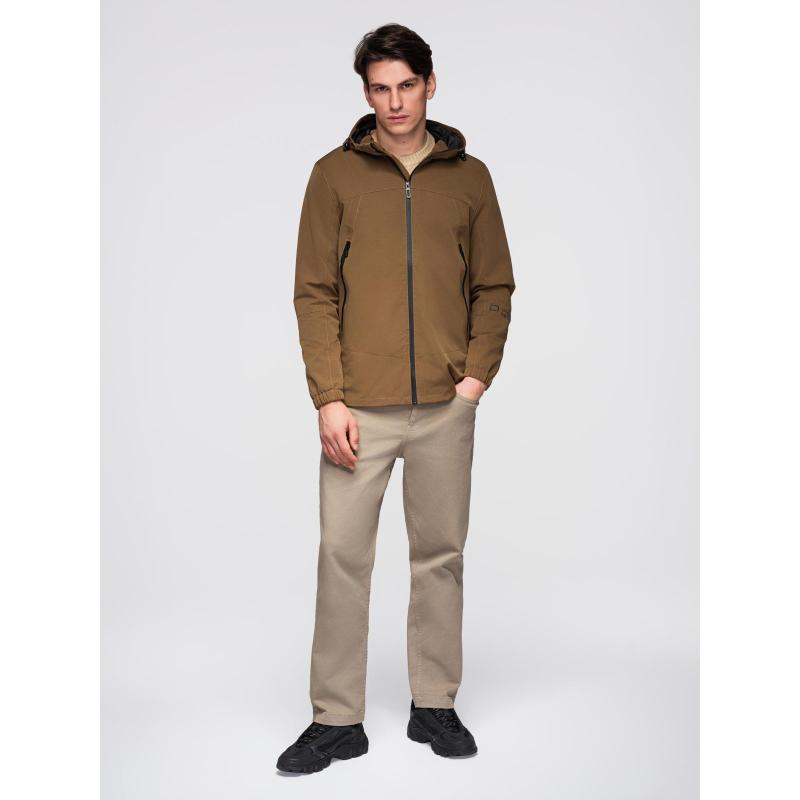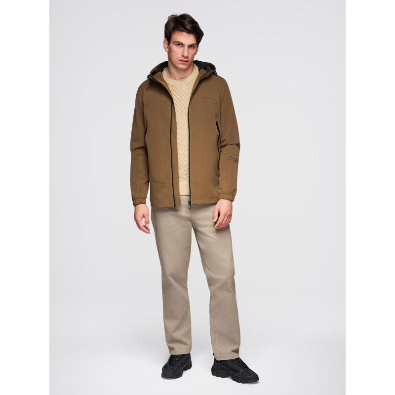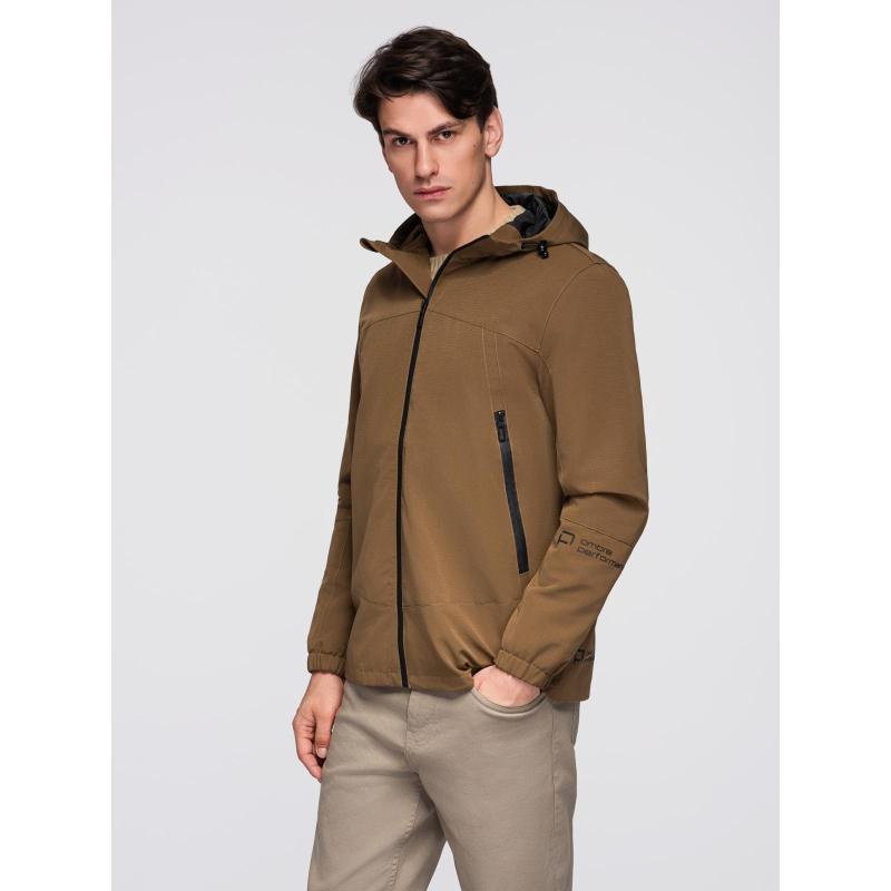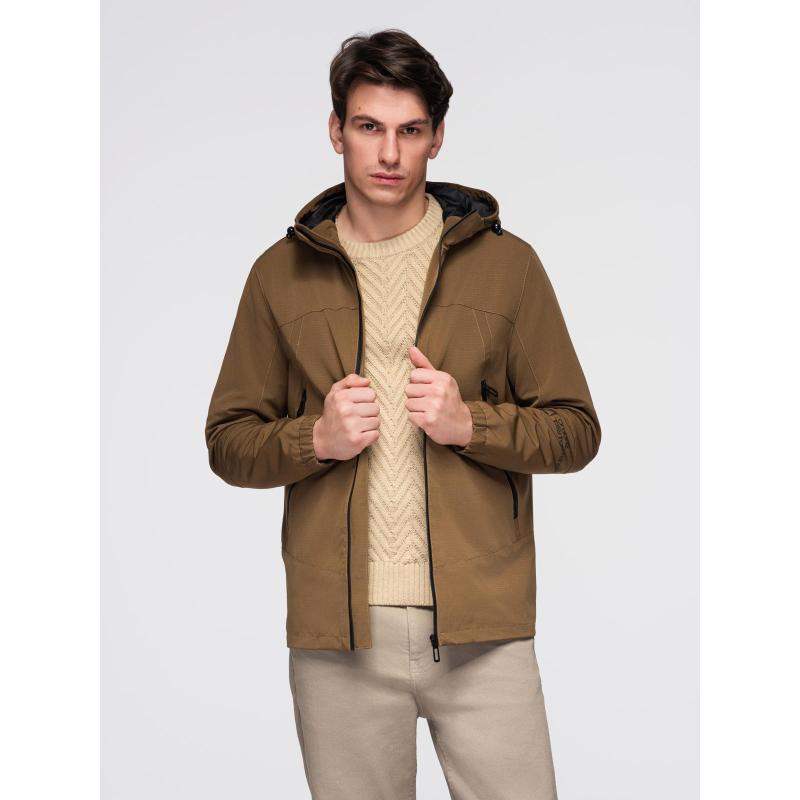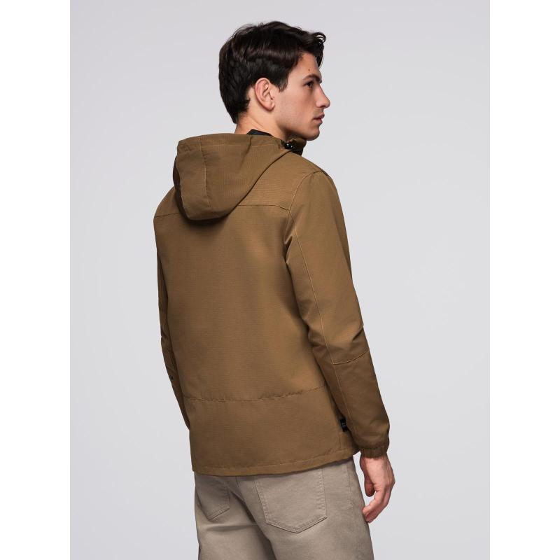 Férfi könnyű kabát vízálló réteggel és kapucnival – barna V2 C638