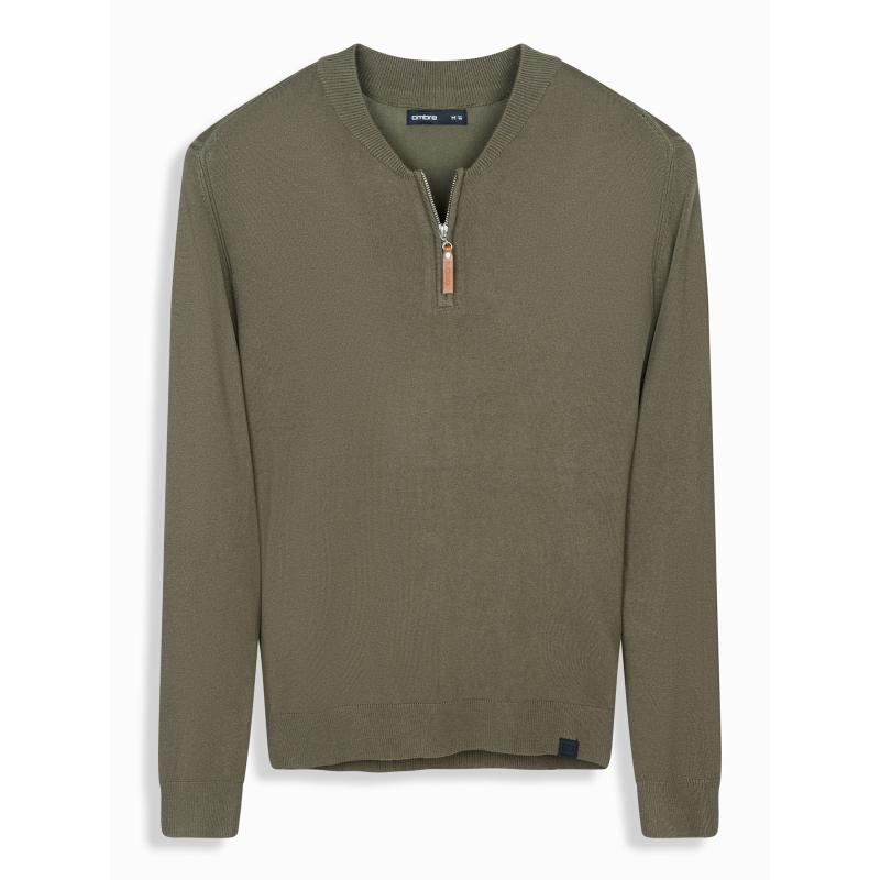 Férfi kötött pulóver strukturált pöttyökkel - tengerészkék V1 OM-SWSW-0118 OM-SWSW-0118