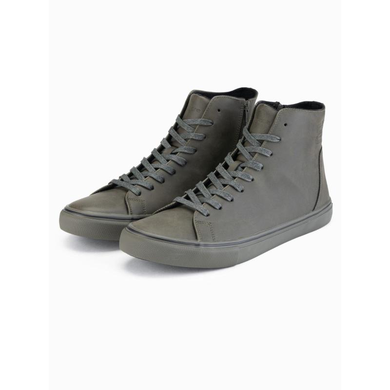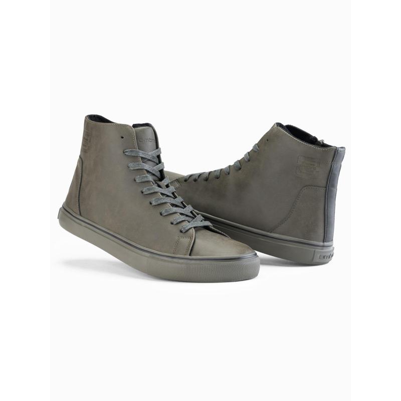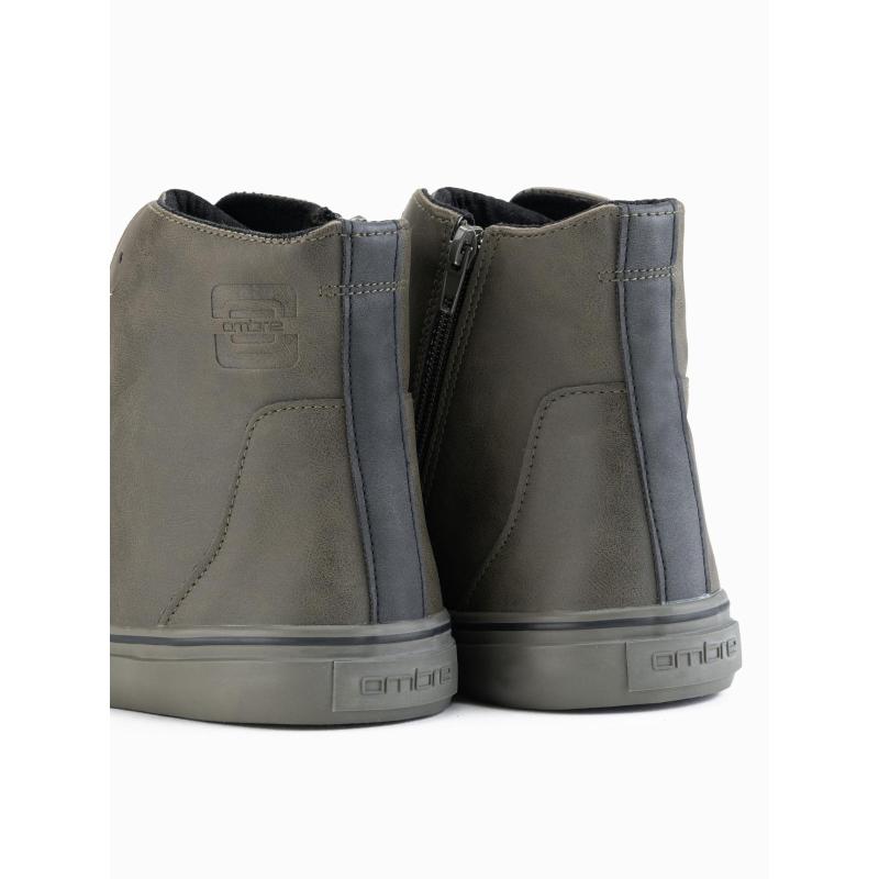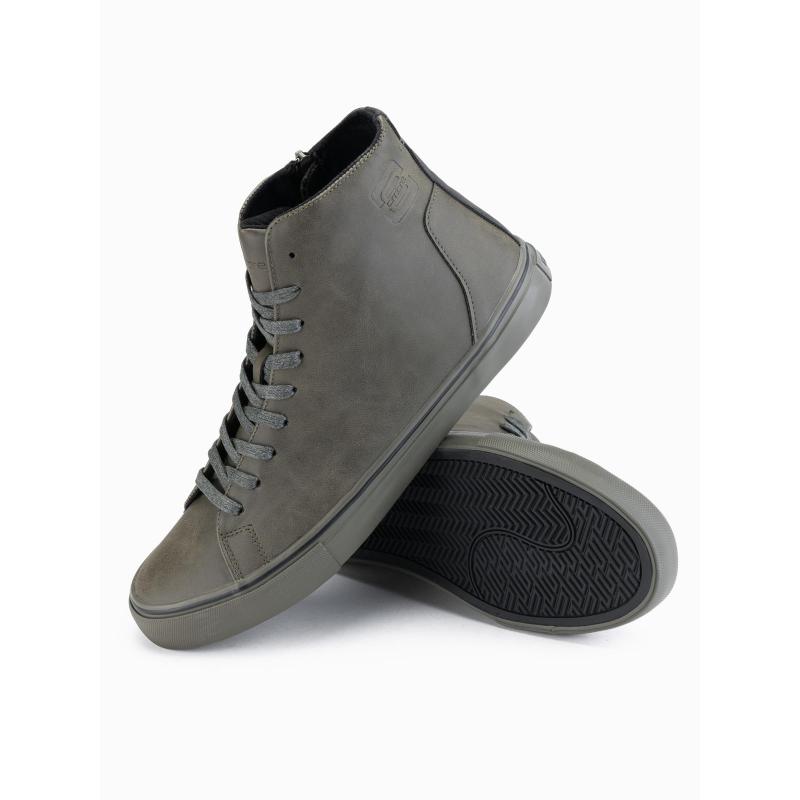 Férfi magas cipő matt textúrával és dombornyomott logóval – sötét olíva V2 OM-FOTH-0185