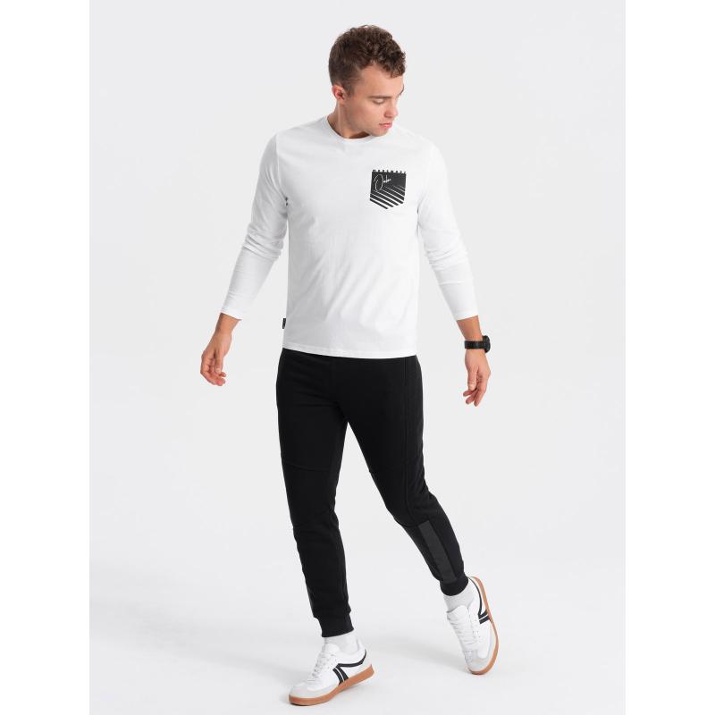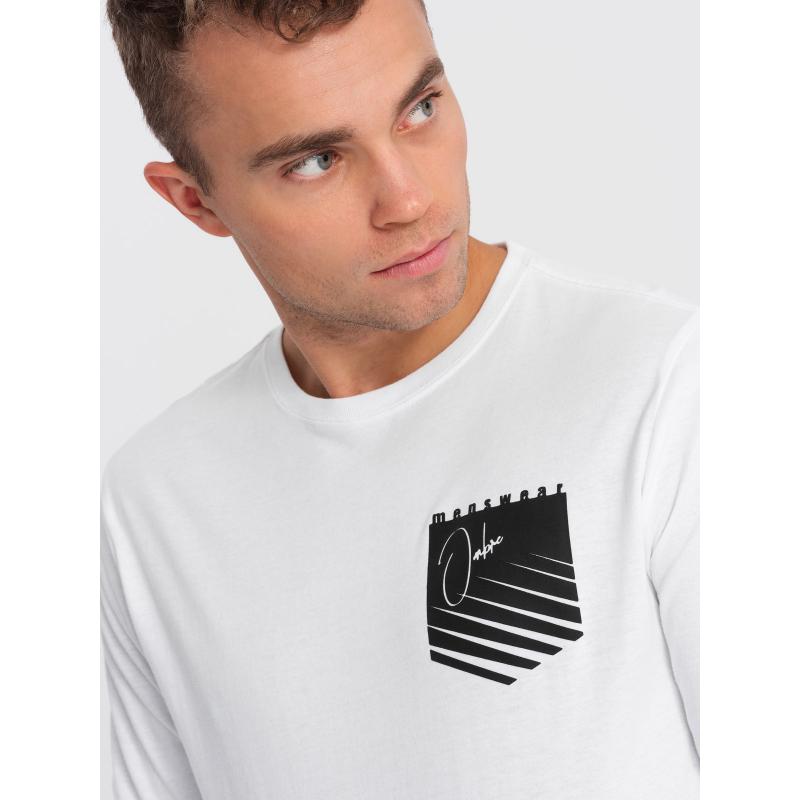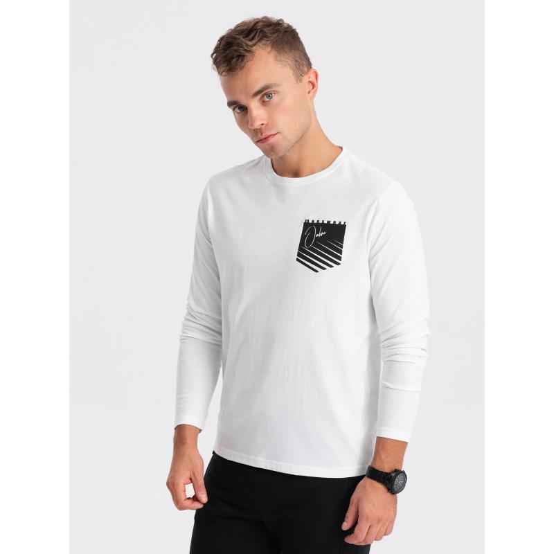 Férfi nyomtatott hosszú ujjú póló V1 OM-LSPT-0118 fehér nélkülözhetetlen darab lesz a szekrényedben, amelyet egész évben használni fogsz. Ez azért van, mert ezzel egy