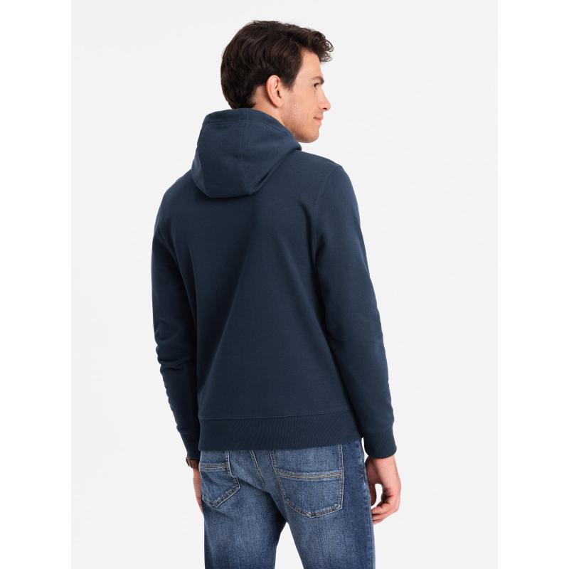 Férfi pamut kapucnis pulóver BASIC sötétkék