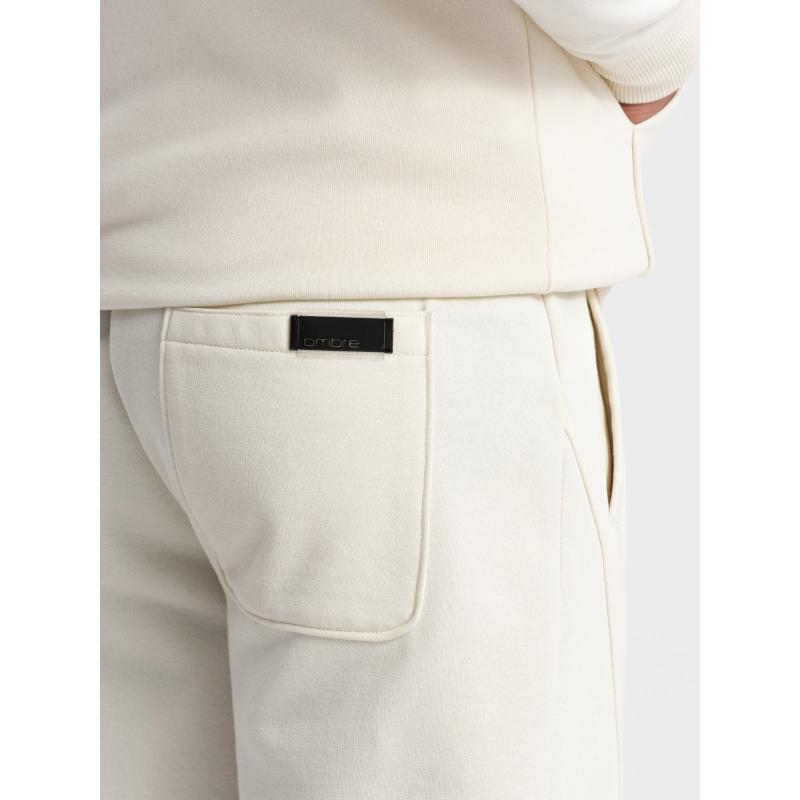 Férfi pamut pulóver szett BASIC cipzáras pulóver + melegítőnadrág - krém színű
