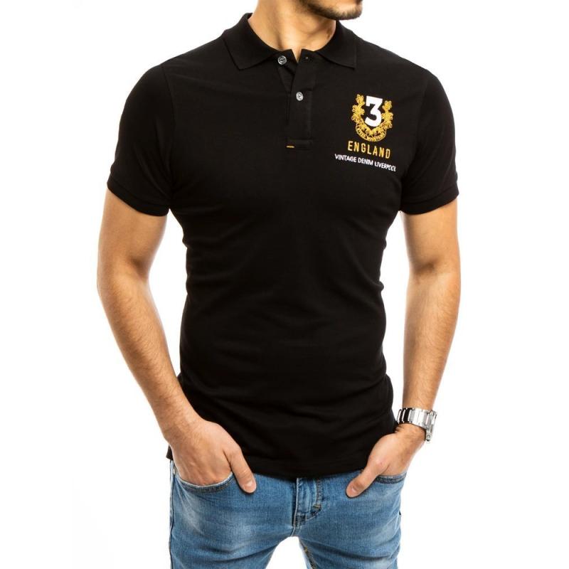 Férfi melange pólóing csíkos gallérral - fekete V1 OM-POSS-0109