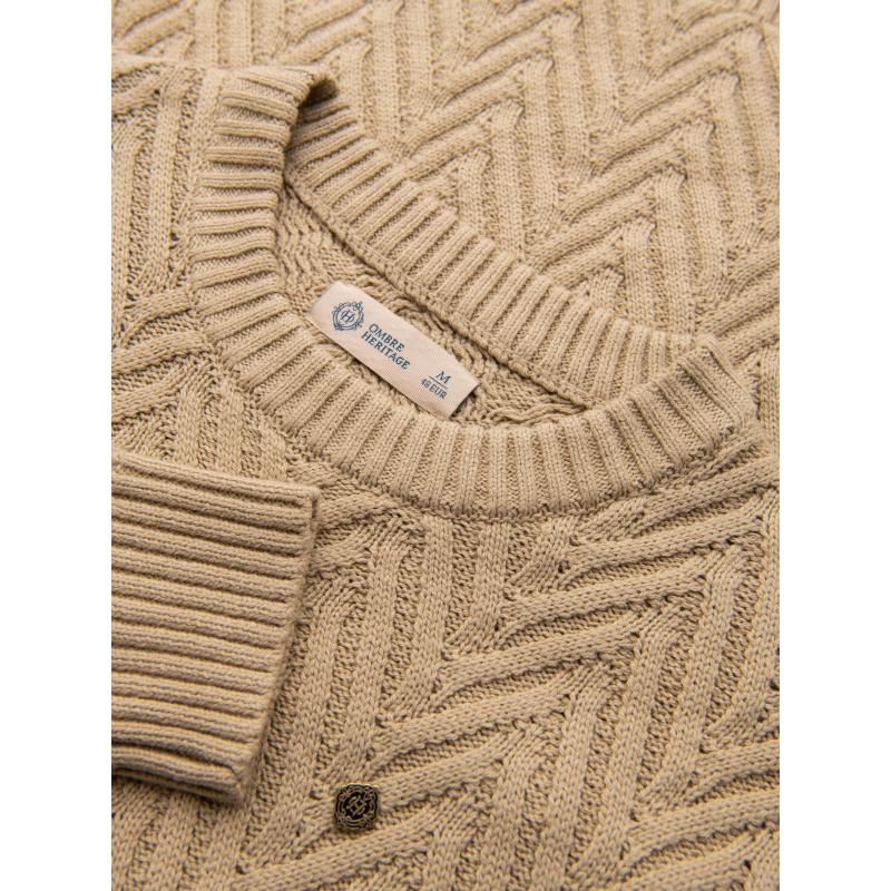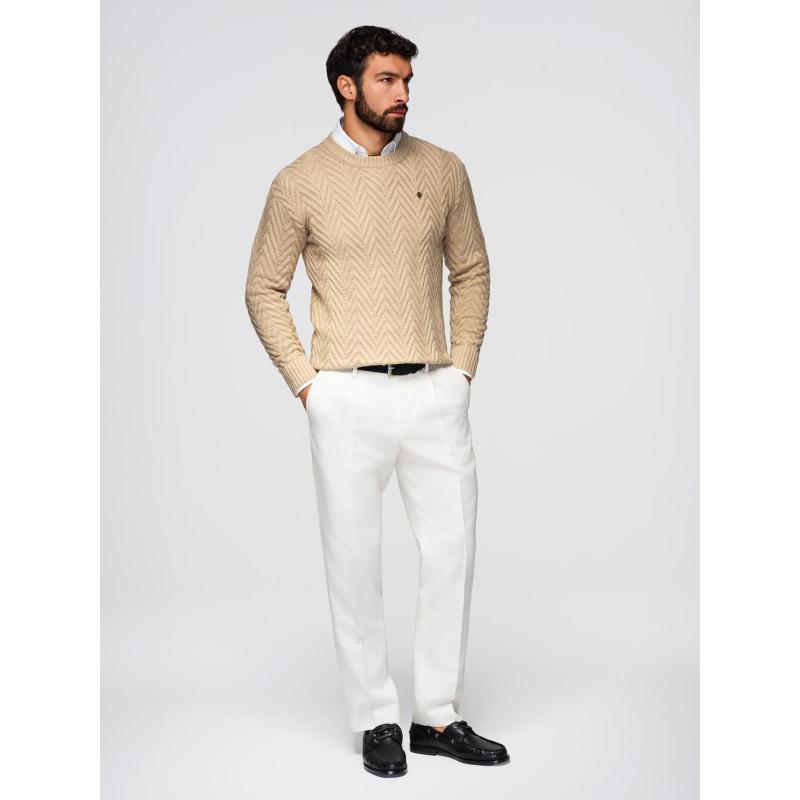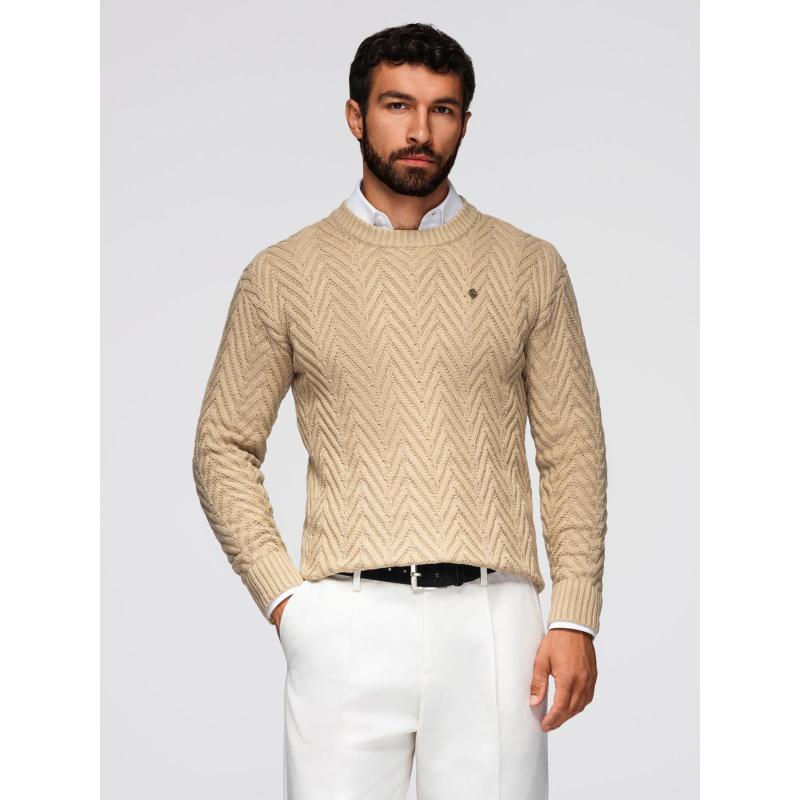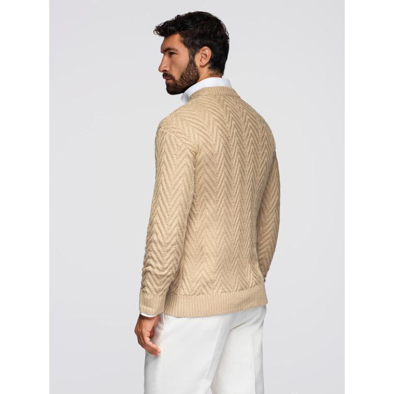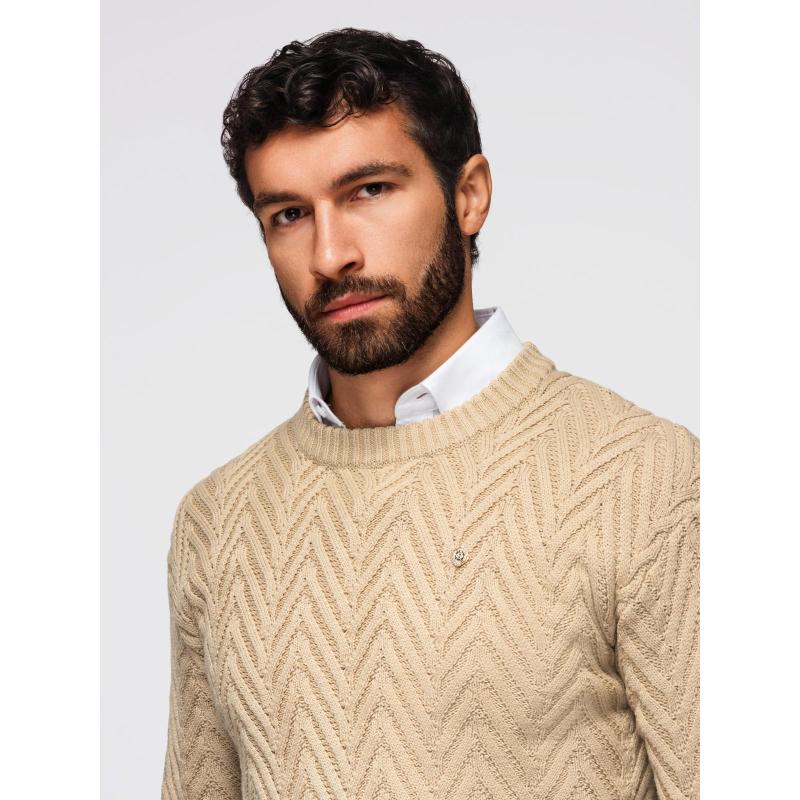 Férfi pulóver cikcakkos mintával – homokszínű V1 OM-SWSW-0147