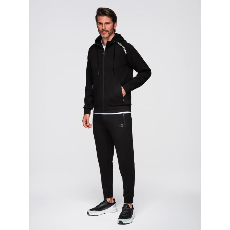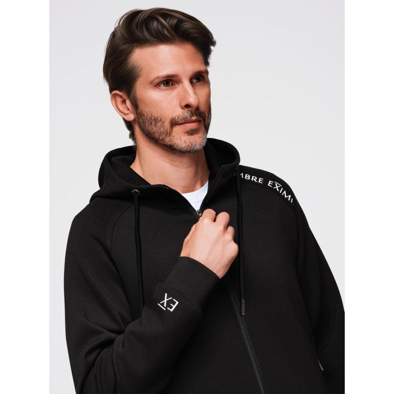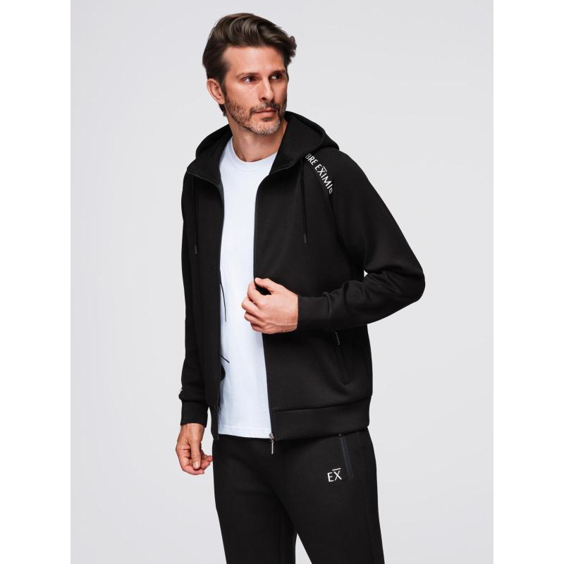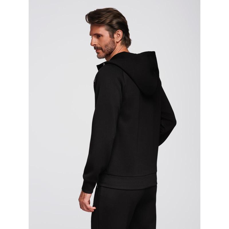 Férfi pulóver gombok nélkül, állógallérral és kapucnival – fekete V1 OM-SSZP-0216