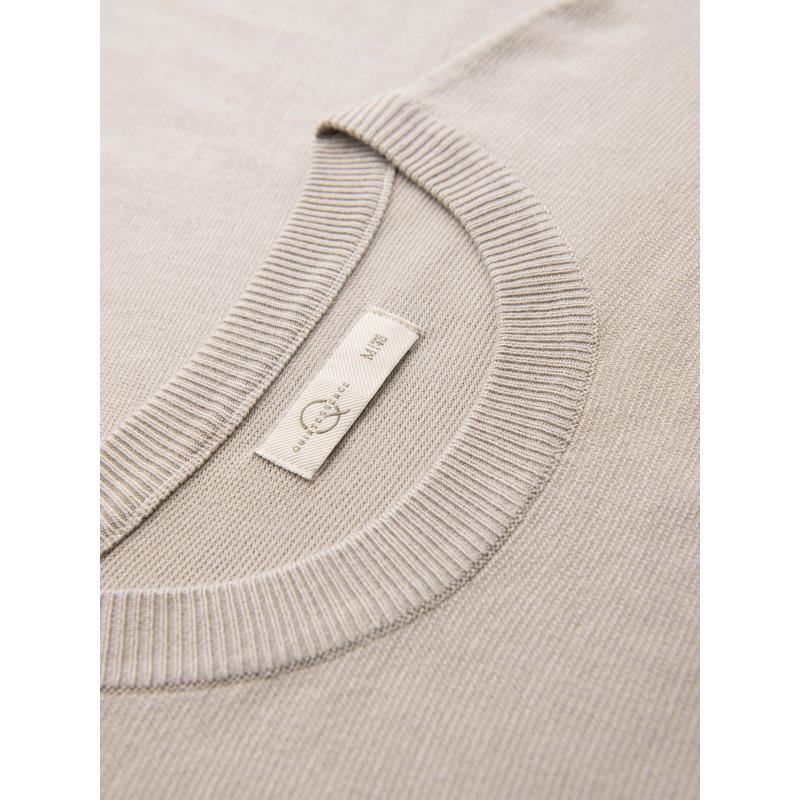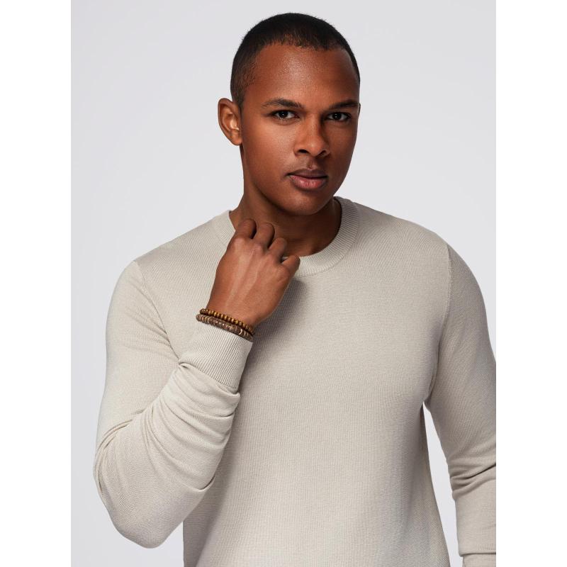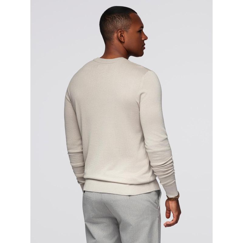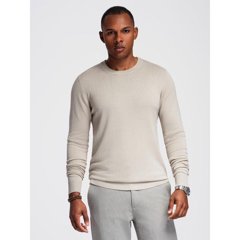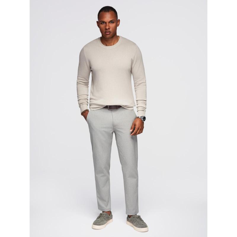 Férfi pulóver, kerek nyakkivágással, rugalmas kötött anyagból, klasszikus mintával – bézs V3 OM-SWSW-0183