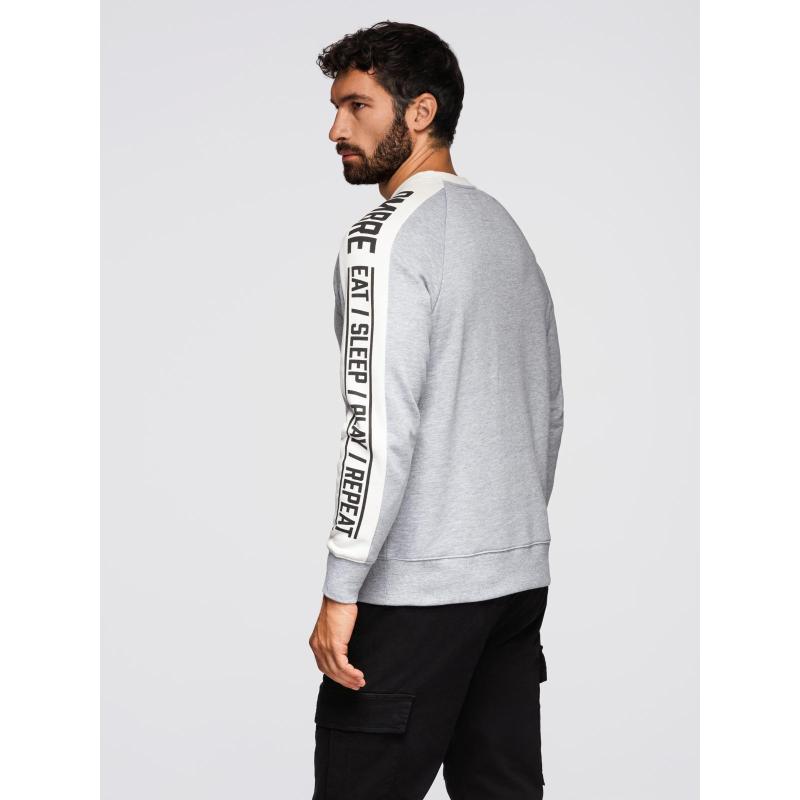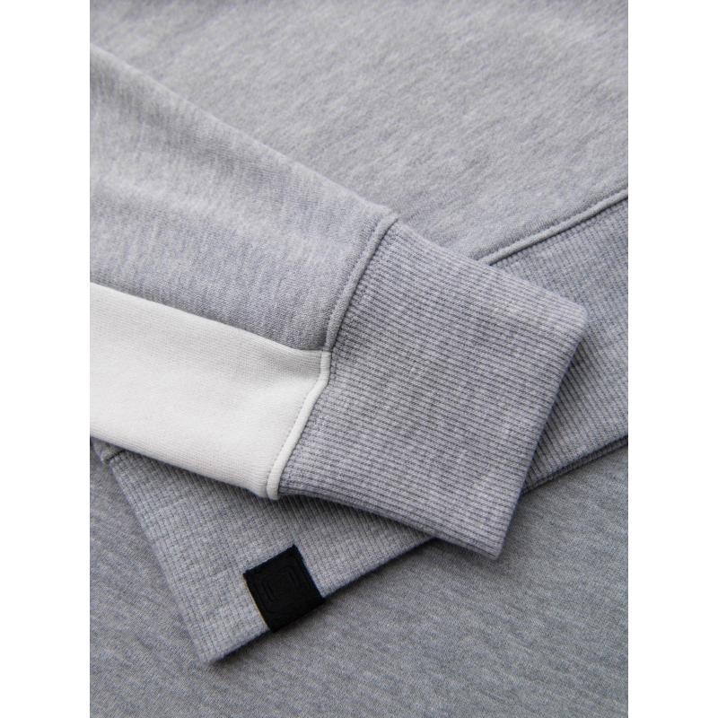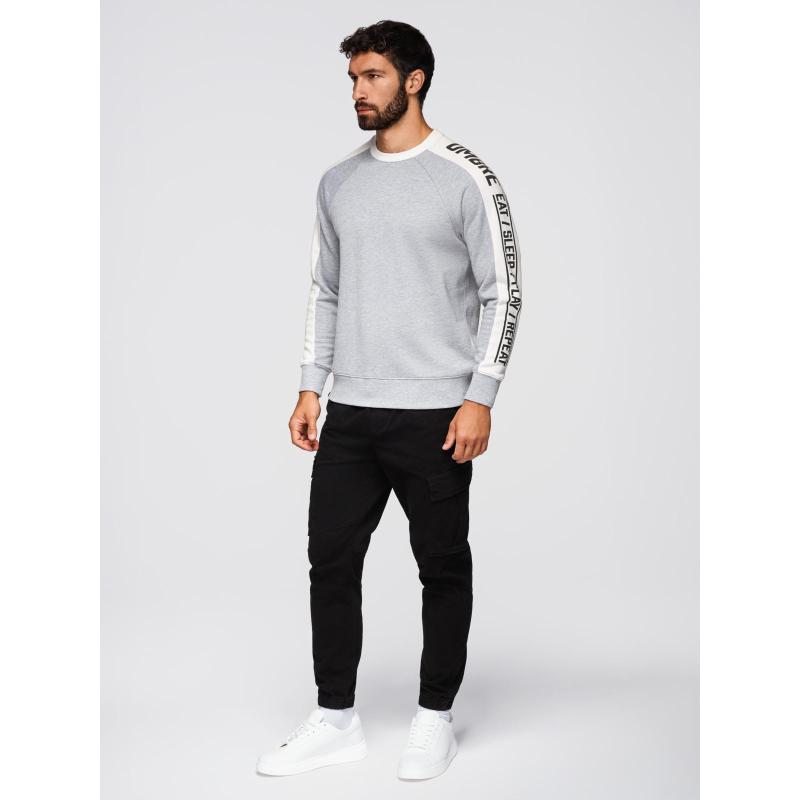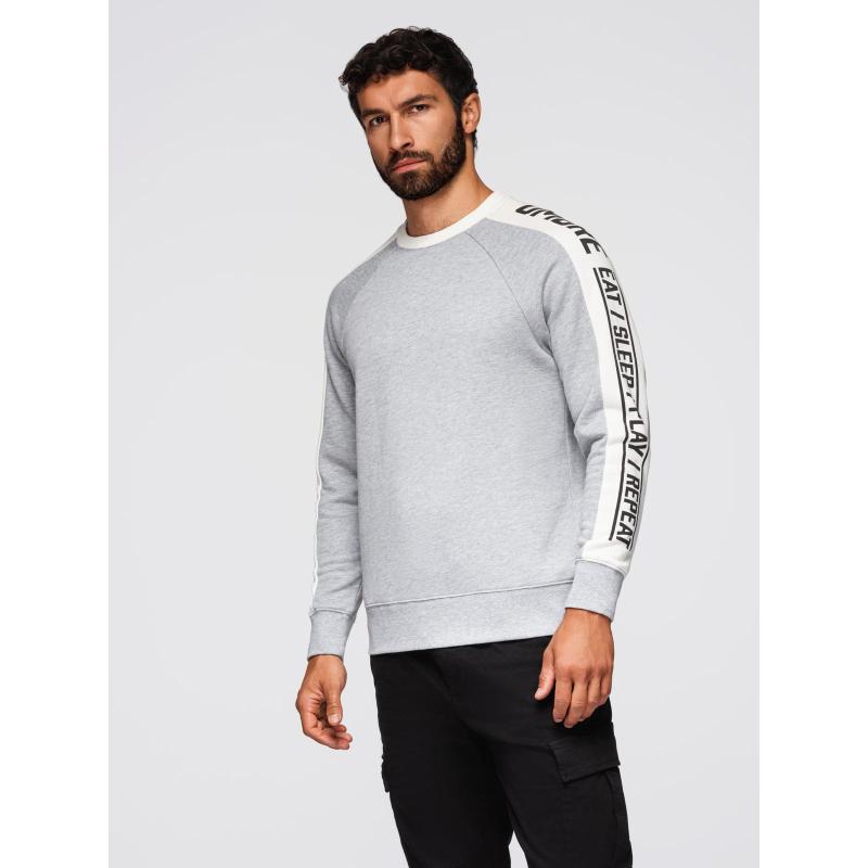 Férfi pulóver kontrasztos csíkokkal és raglán ujjakkal – szürke melírozott V2 OM-SSNZ-0200