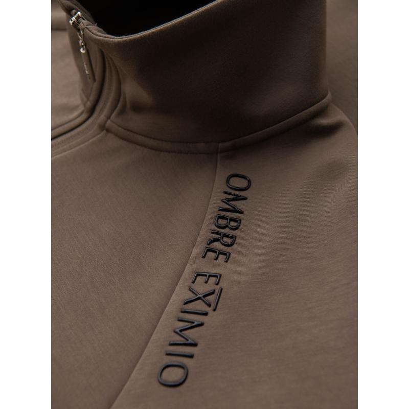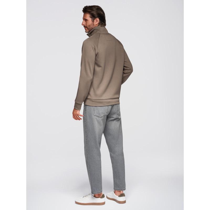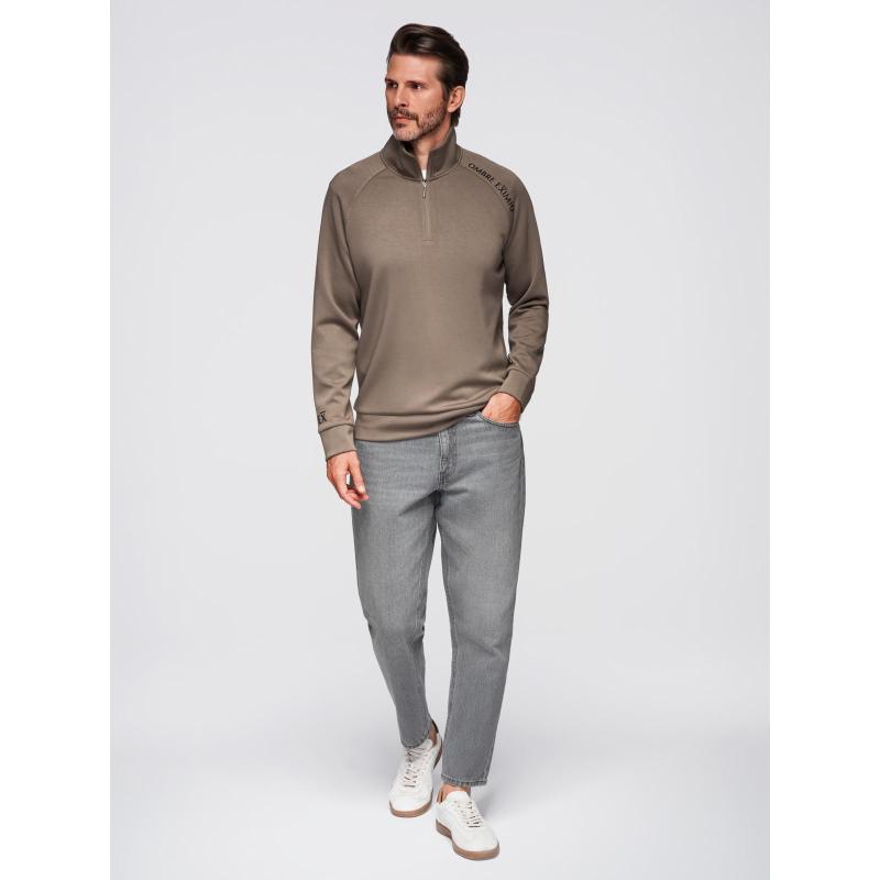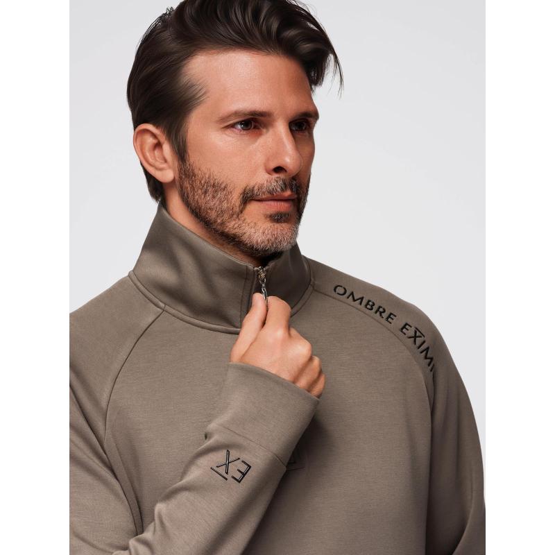 Férfi pulóver kontrasztos nyomtatással és magas gallérral, cipzárral – szürke-barna V3 OM-SSZP-0211
