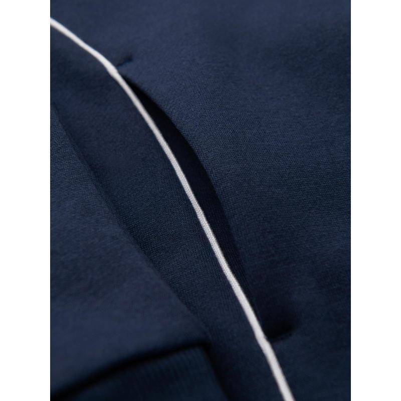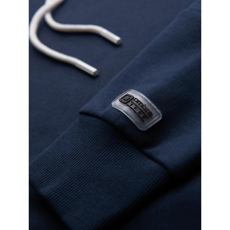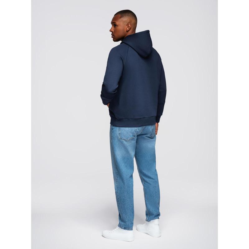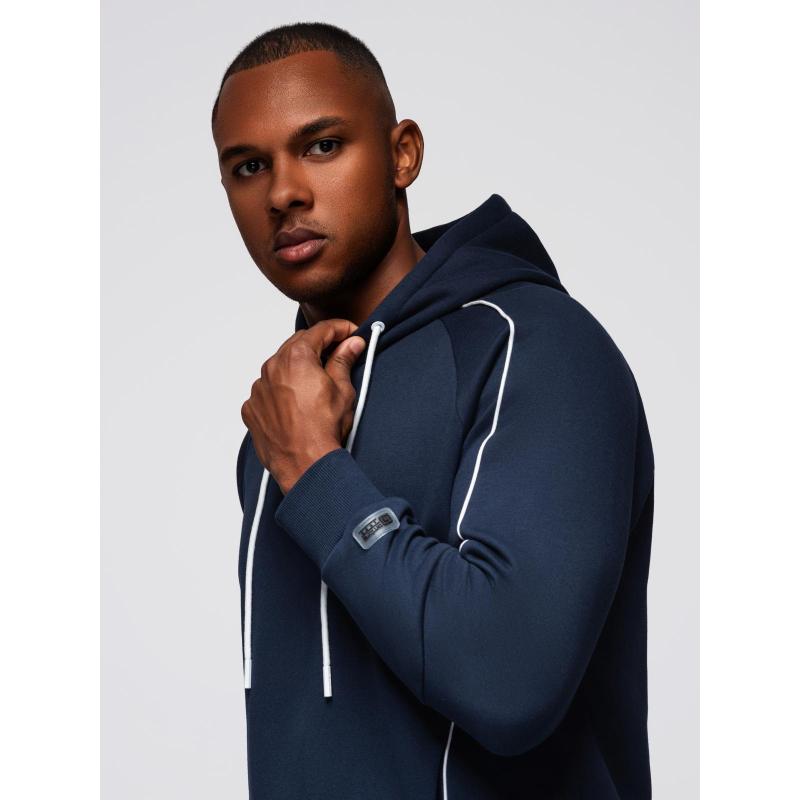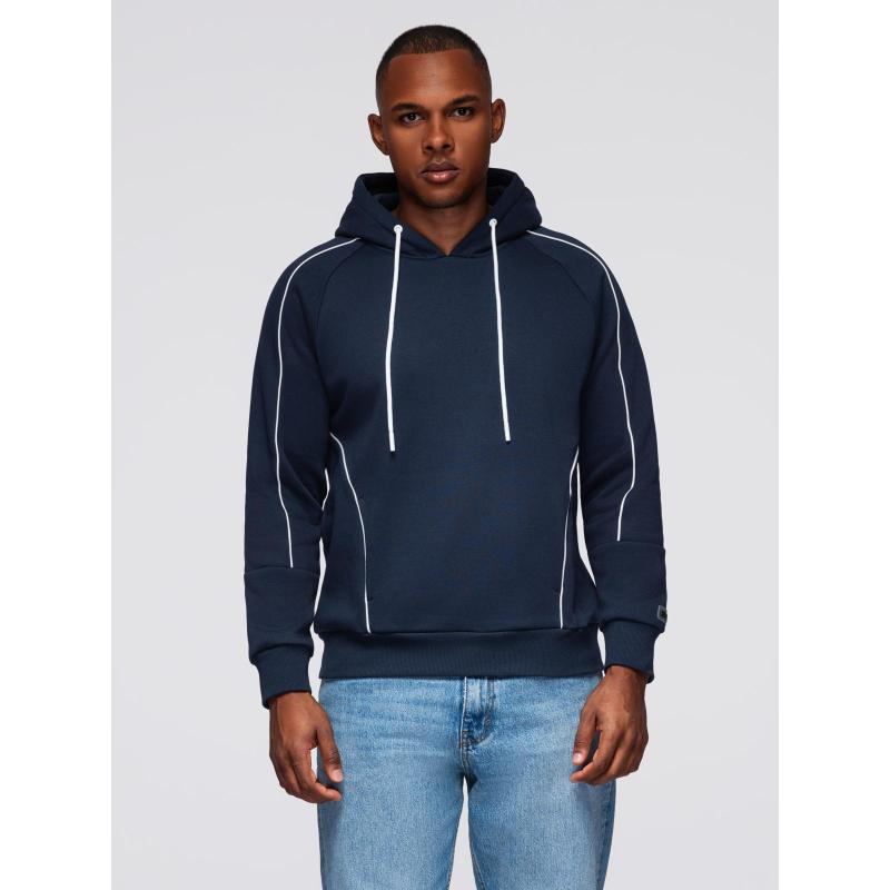 Férfi pulóver kontrasztos varrással és kapucnival – sötétkék V2 OM-SSNZ-0250