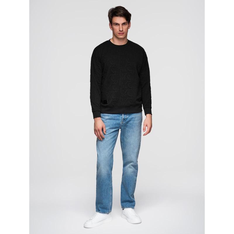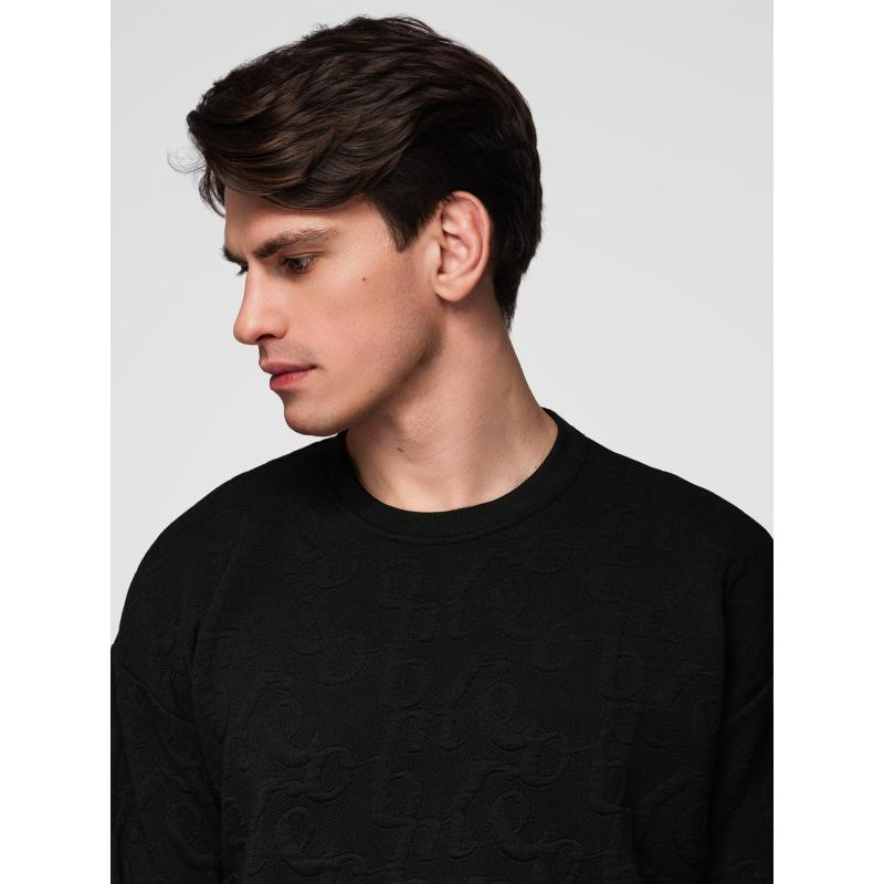 Férfi pulóver RELAXED FIT dombornyomott felirattal – fekete V1 B1712