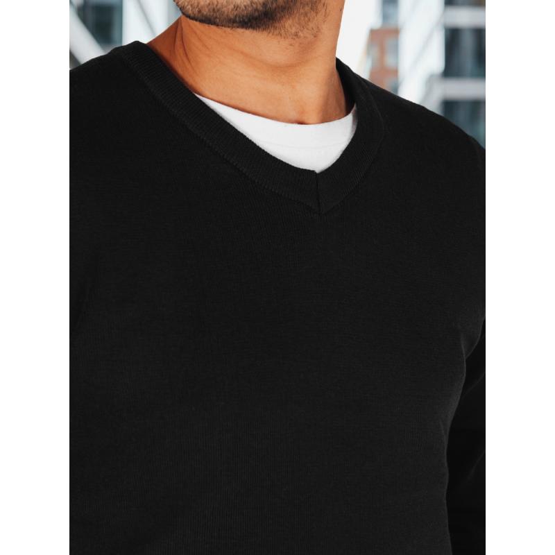 Férfi pulóver V-kivágással, fekete