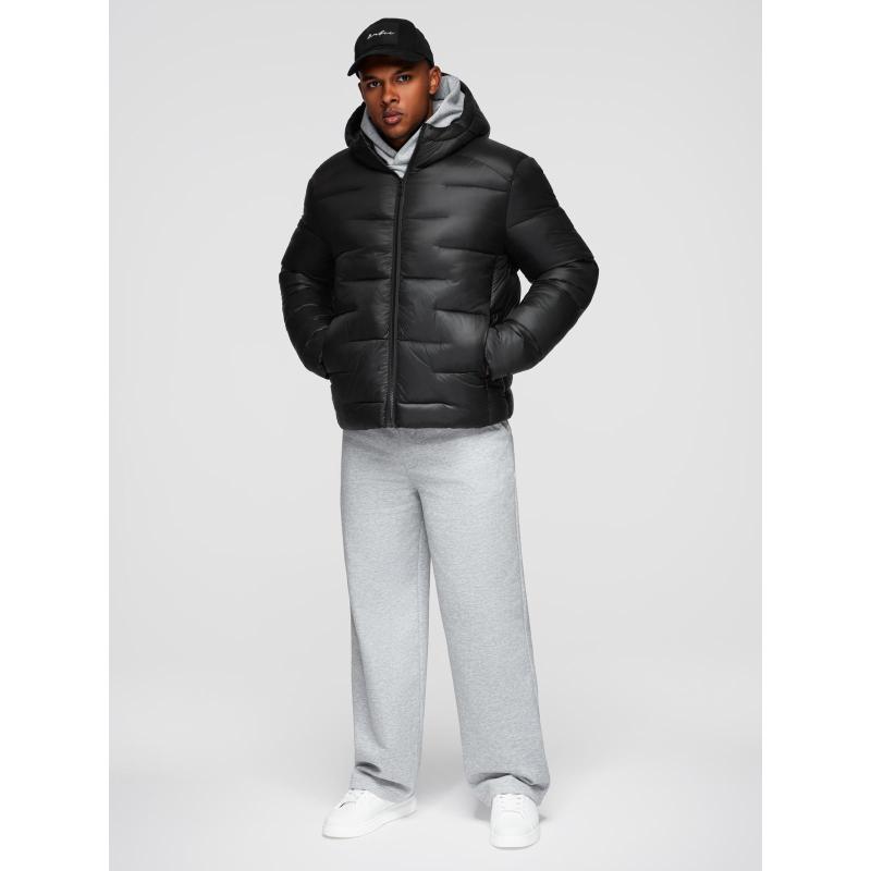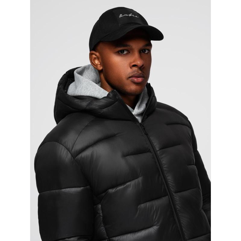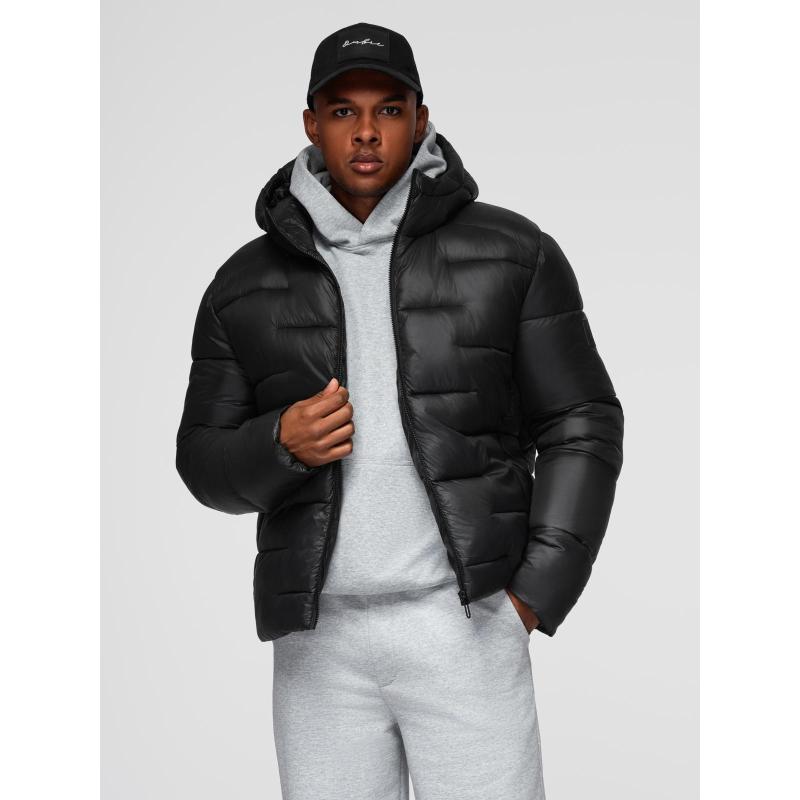 Férfi steppelt kabát kapucnival – fekete V1 OM-JAHP-0235