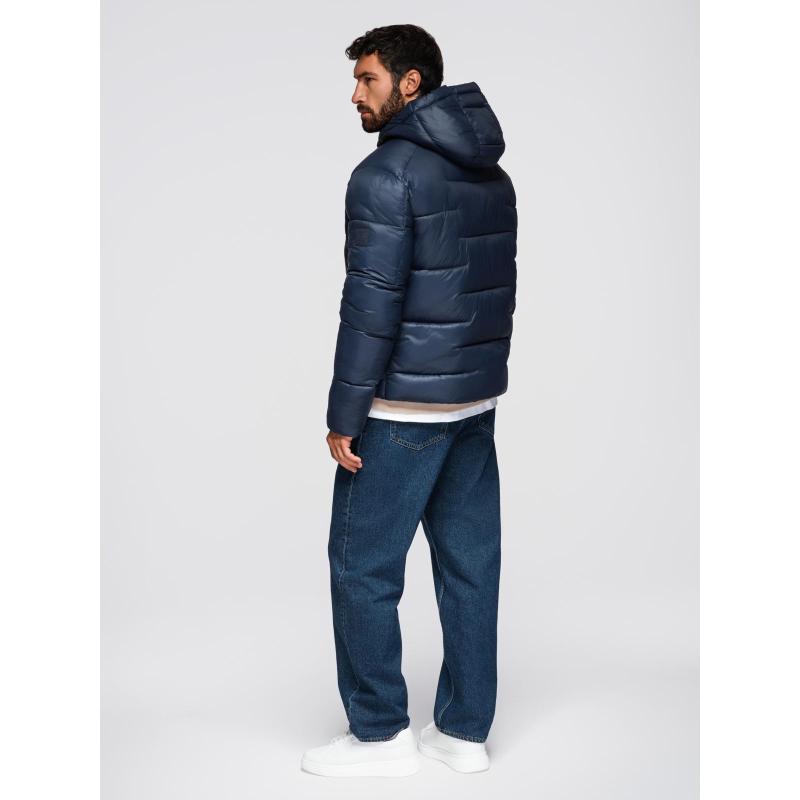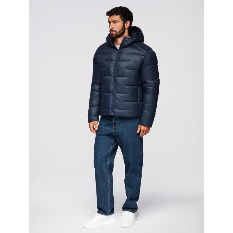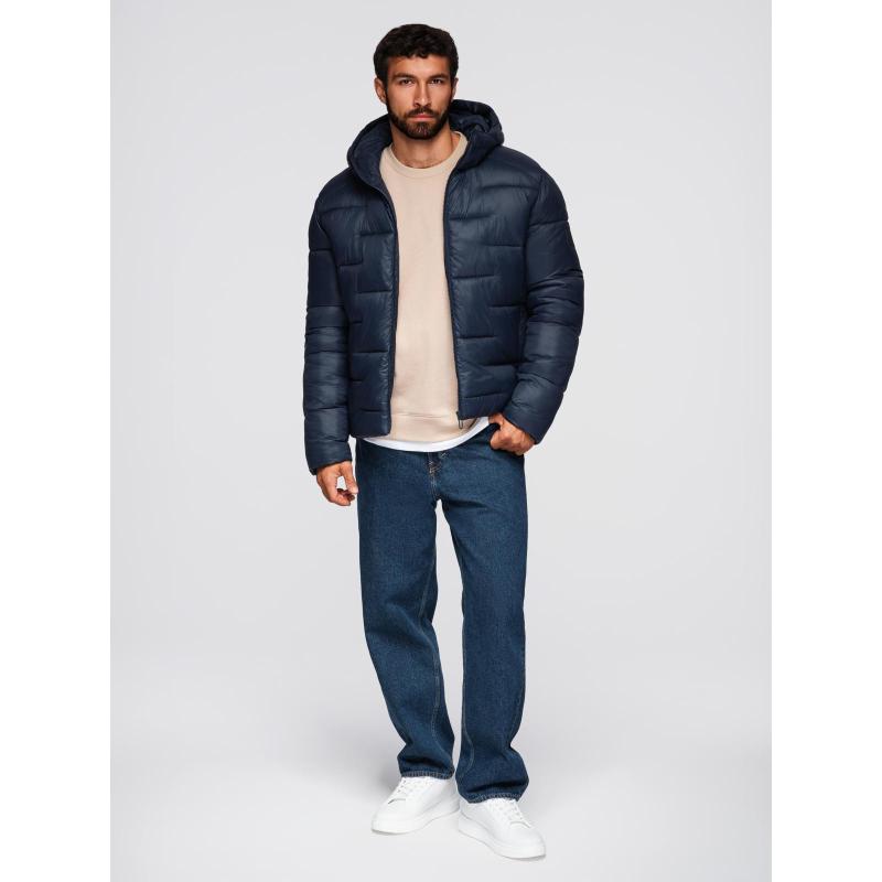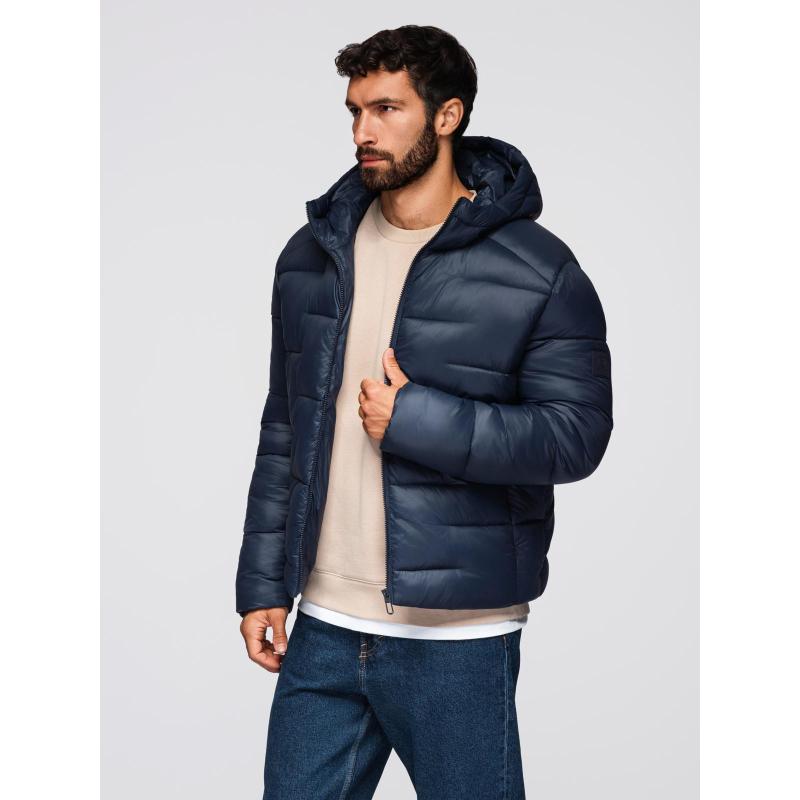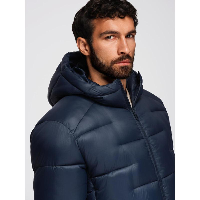Férfi steppelt kabát kapucnival – sötétkék V4 OM-JAHP-0235
