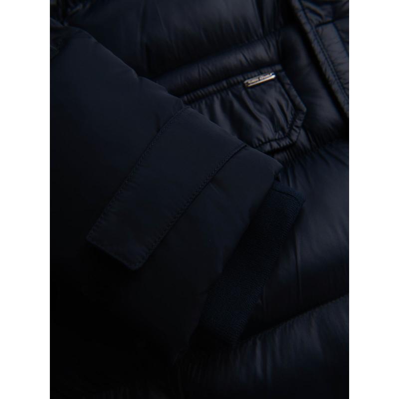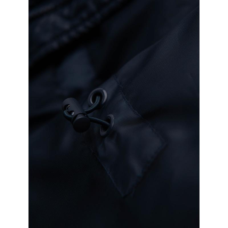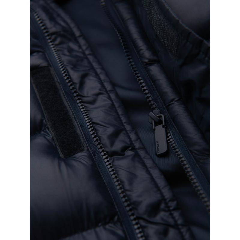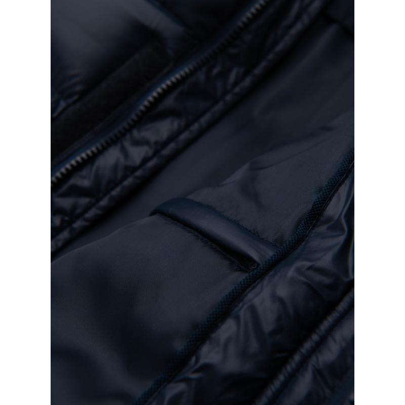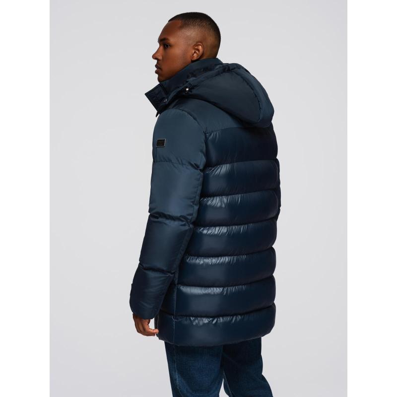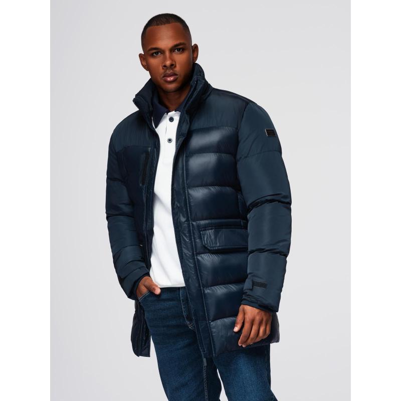 Férfi steppelt kabát kombinált anyagokból és kapucnival – sötétkék V3 OM-JALJ-0266